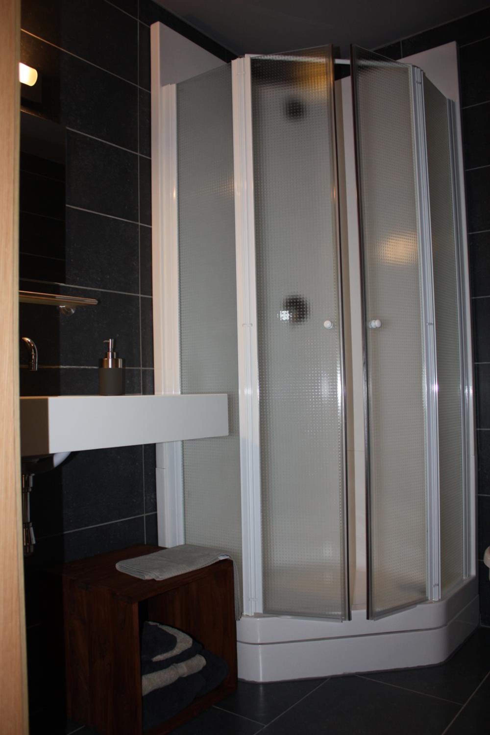 Die Duschkabinen sind sehr klein und eng.