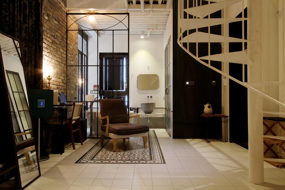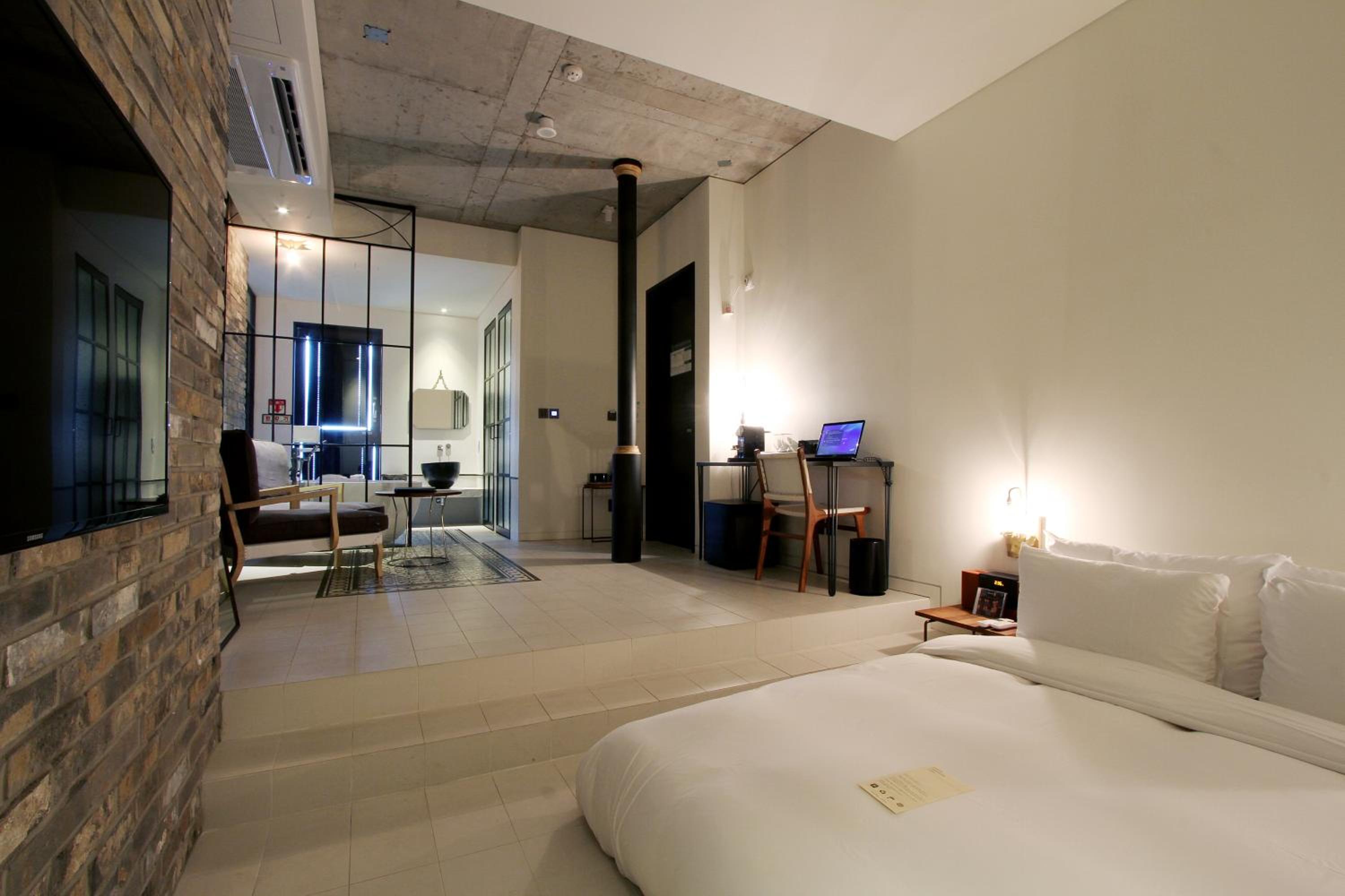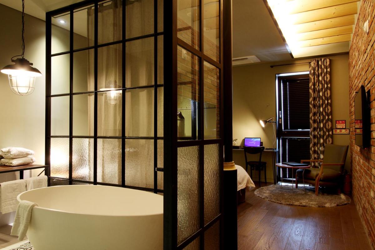Because it's a boutique loft it has a different set up than most hotels, for example having a bath in the room. Shower and the toilet were separately. A sink in the room by the window. It was a different experience in a good way. While you stay there- there's a gym next door and go check out the awesome Owl's House (부엉이산장) nearby for a dinner.