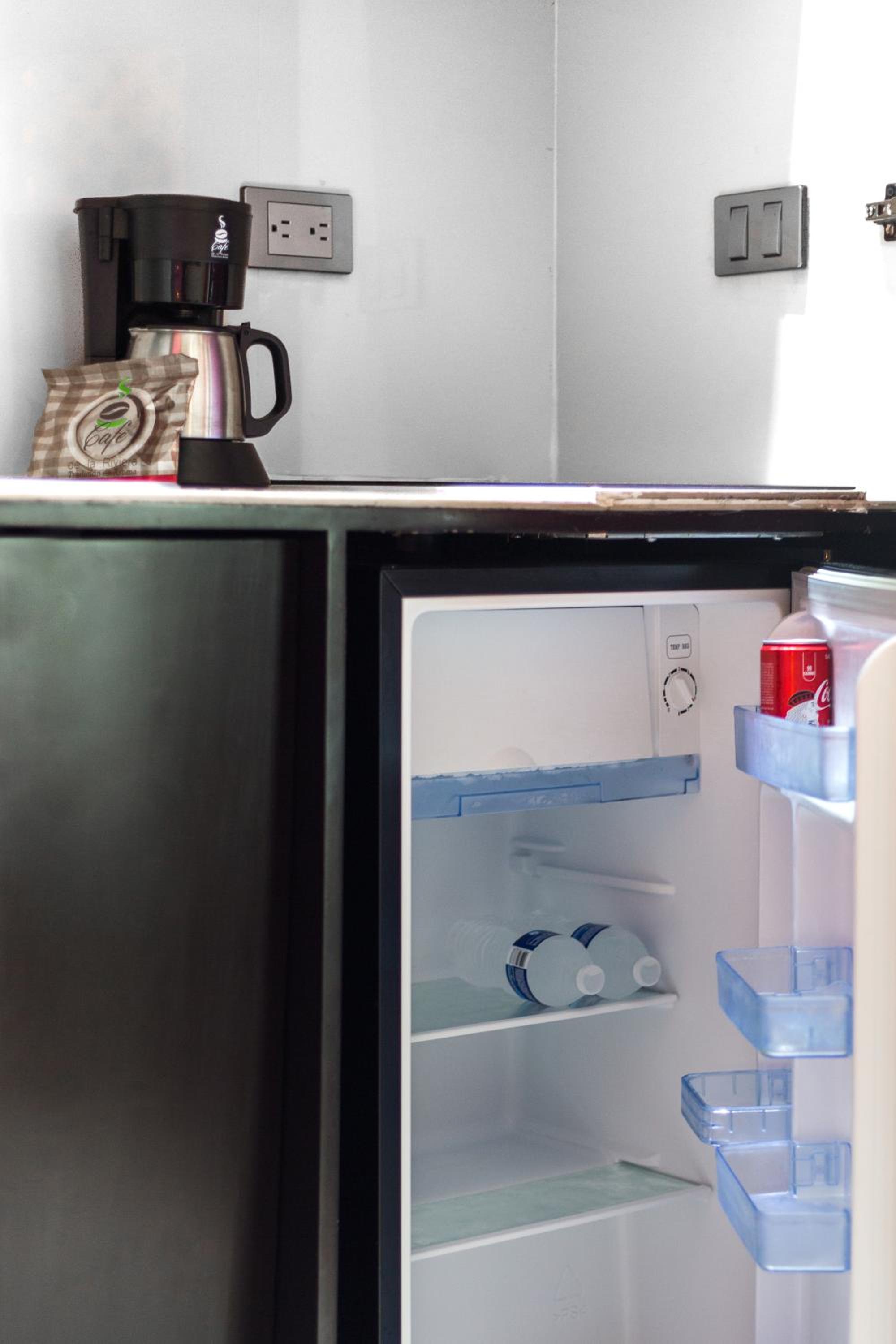 The room was equipped with the essential plates, knives, and a refrigerator, providing everything I needed for my stay