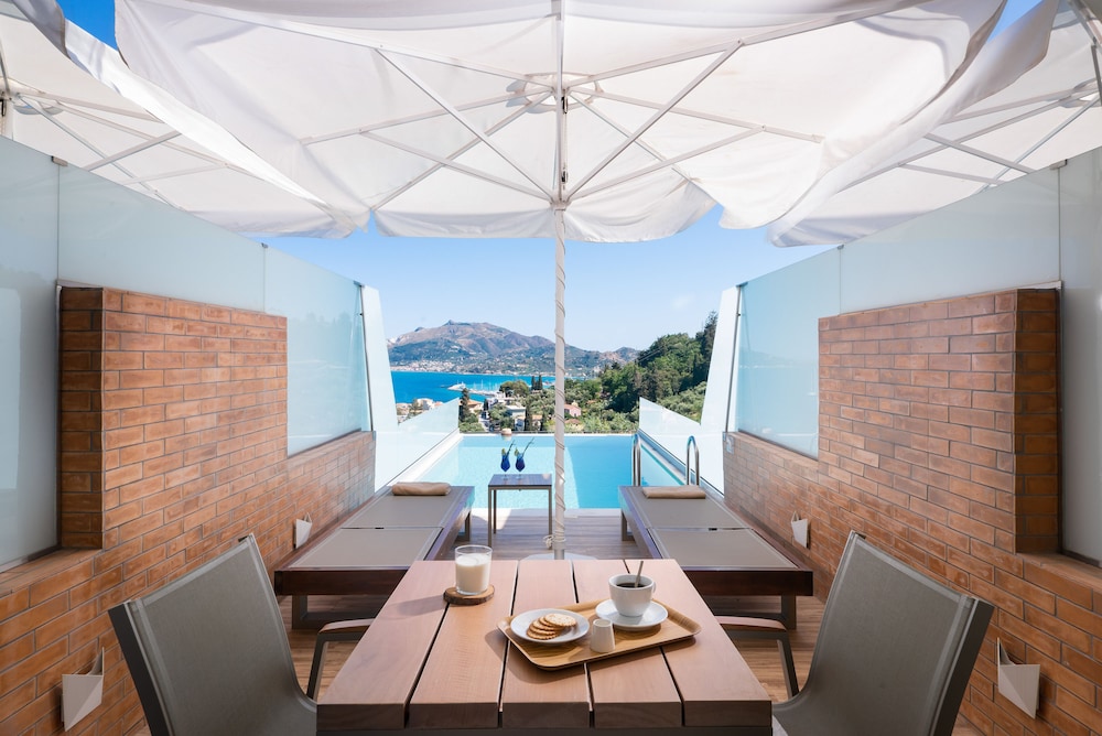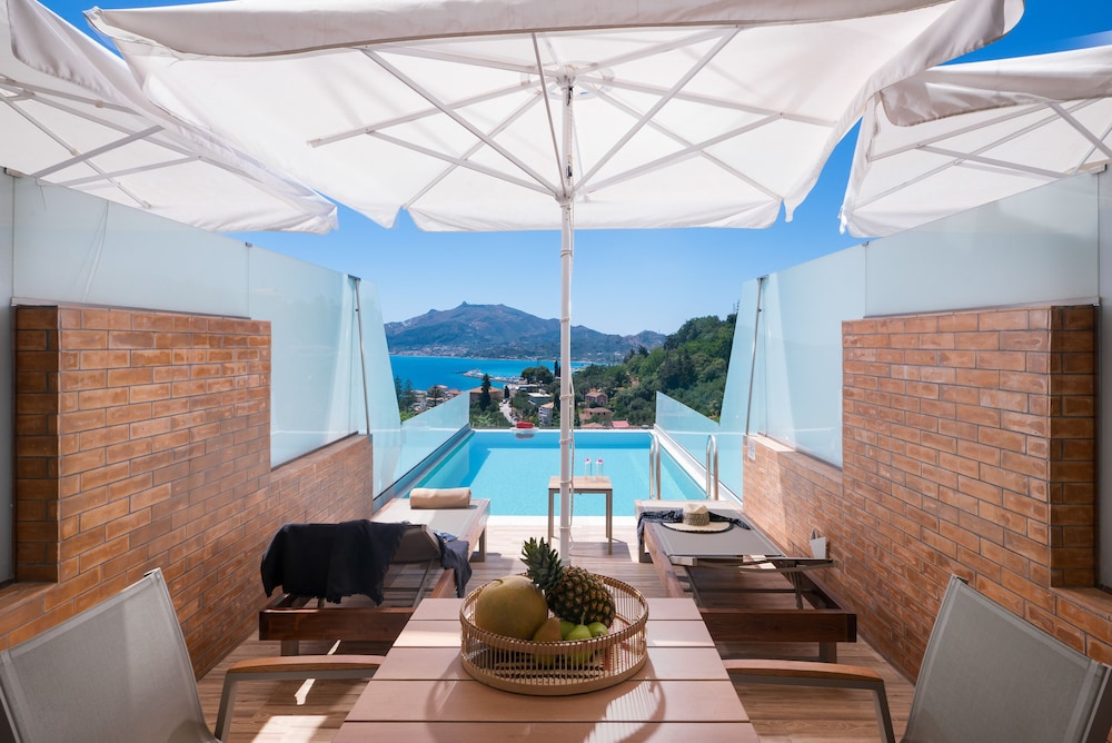 Dive into relaxation with our seasonal outdoor pool or soak up the stunning sea views from our terrace. Take advantage of our complimentary shuttle service, ensuring seamless exploration of nearby attractions that include the picturesque Tsilivi Beach.