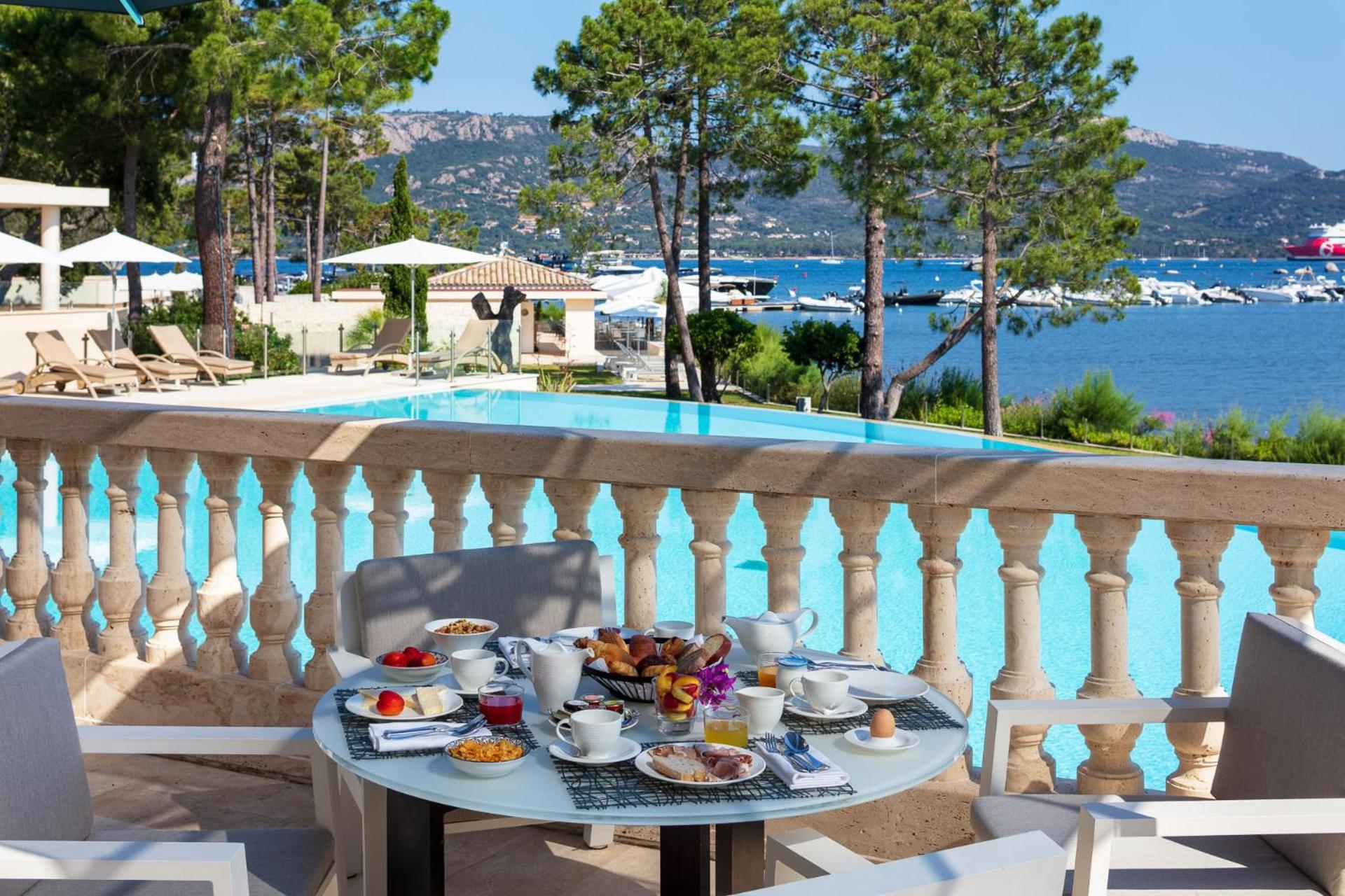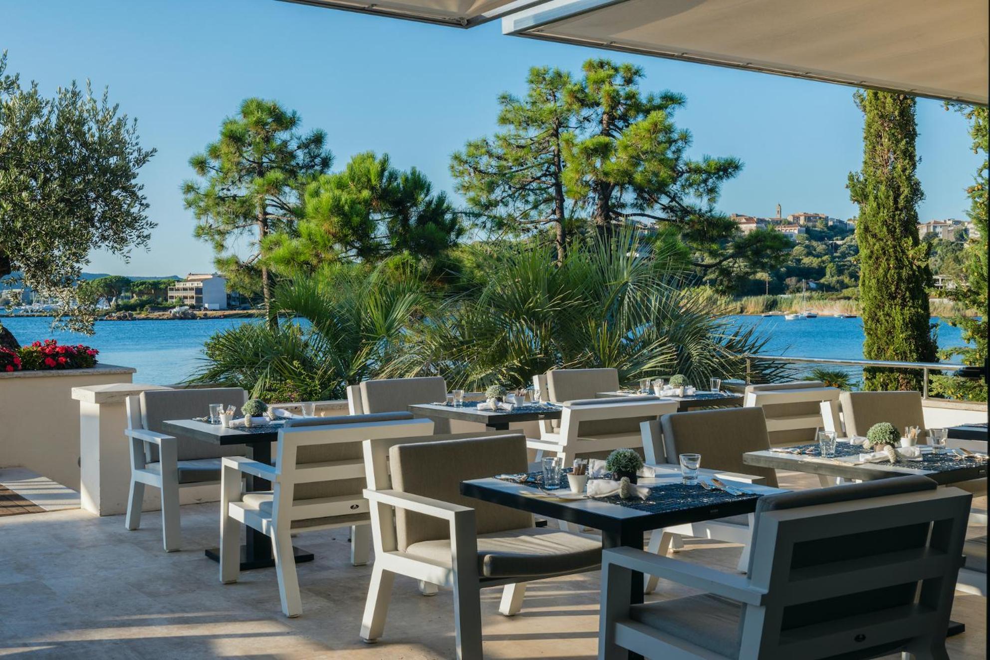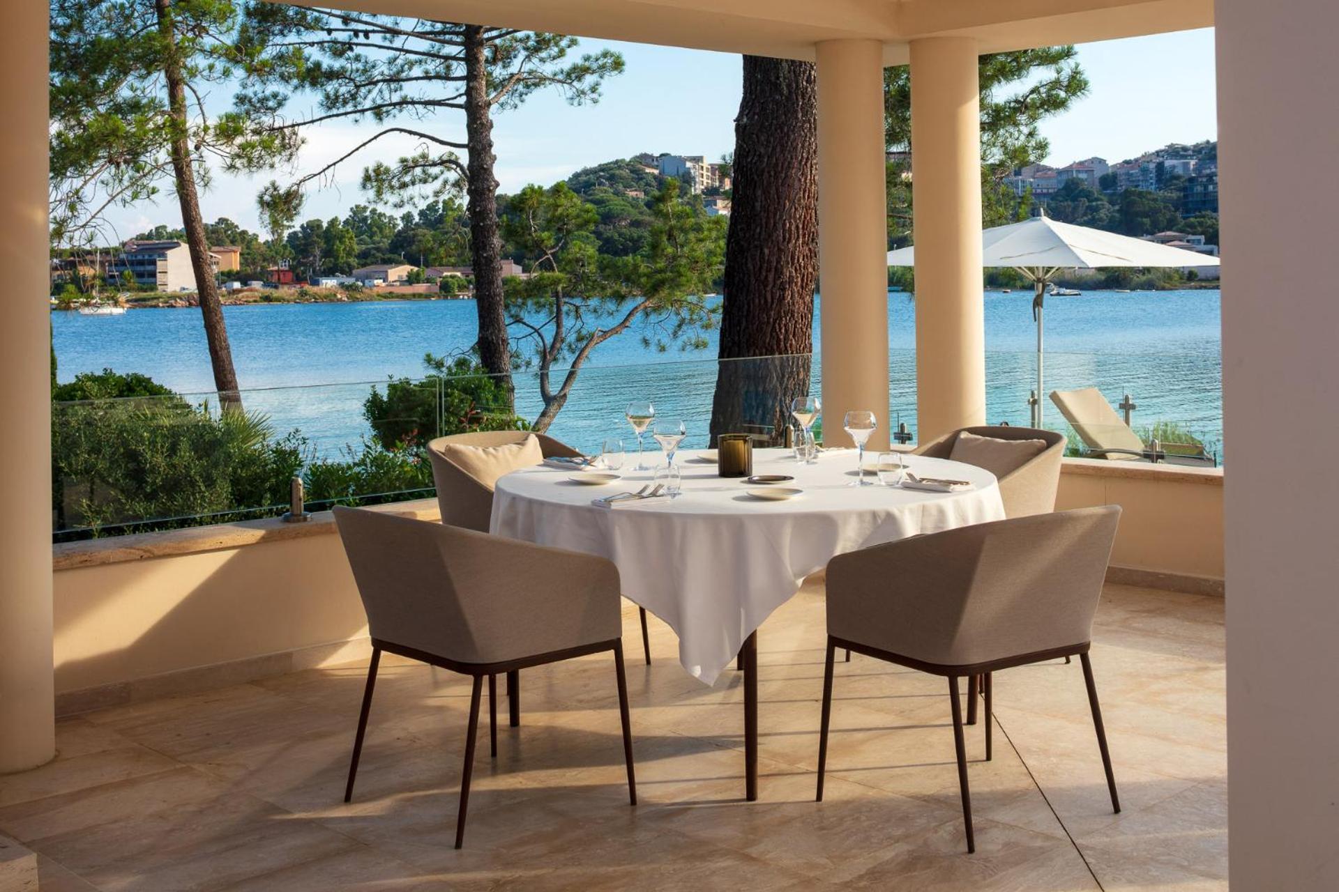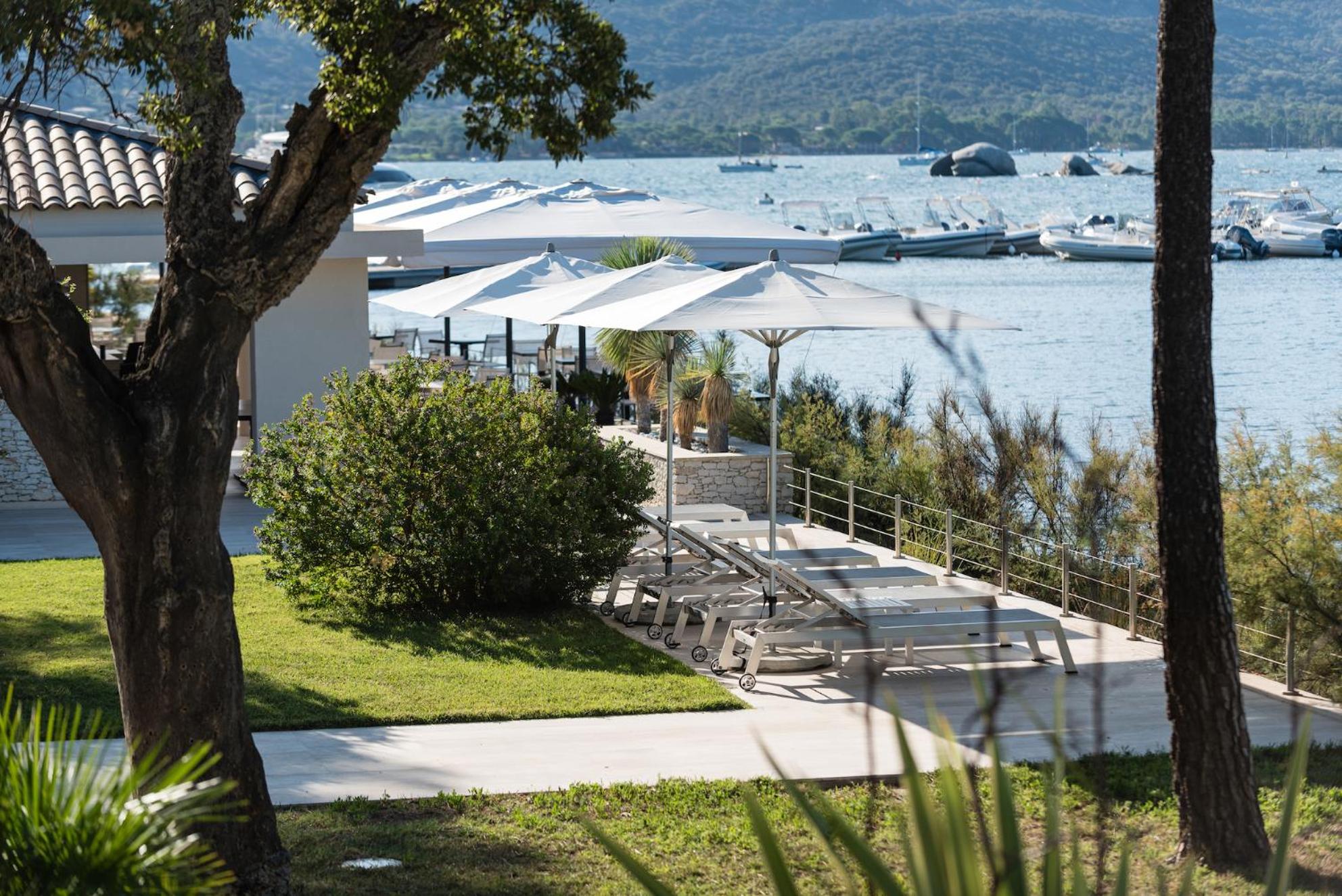 Elegant Rooms with Views: The air-conditioned rooms and suites boast spacious layouts, individual terraces with stunning views of Porto Vecchio Gulf, and modern comforts like free Wi-Fi and satellite TV.