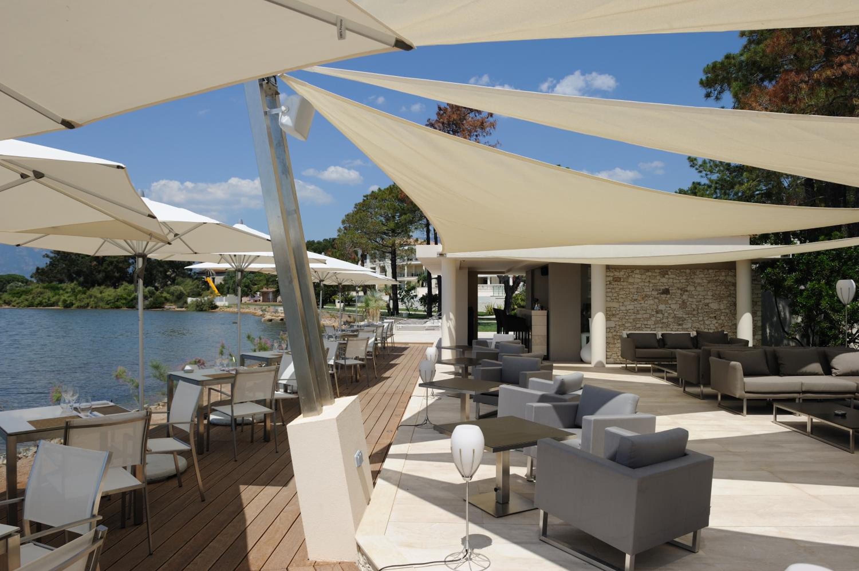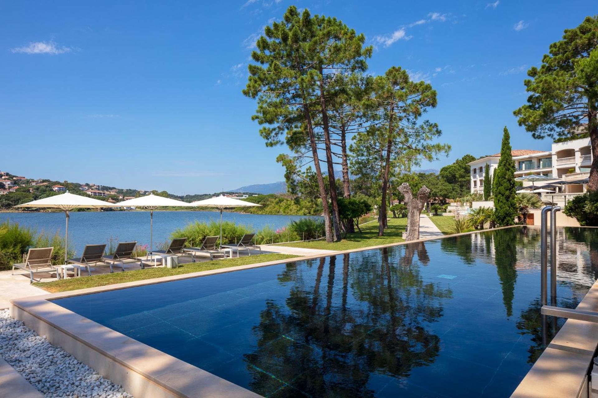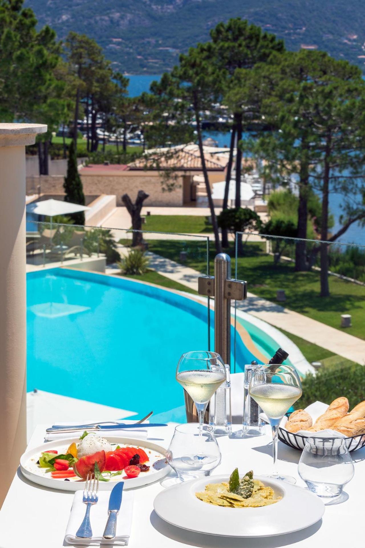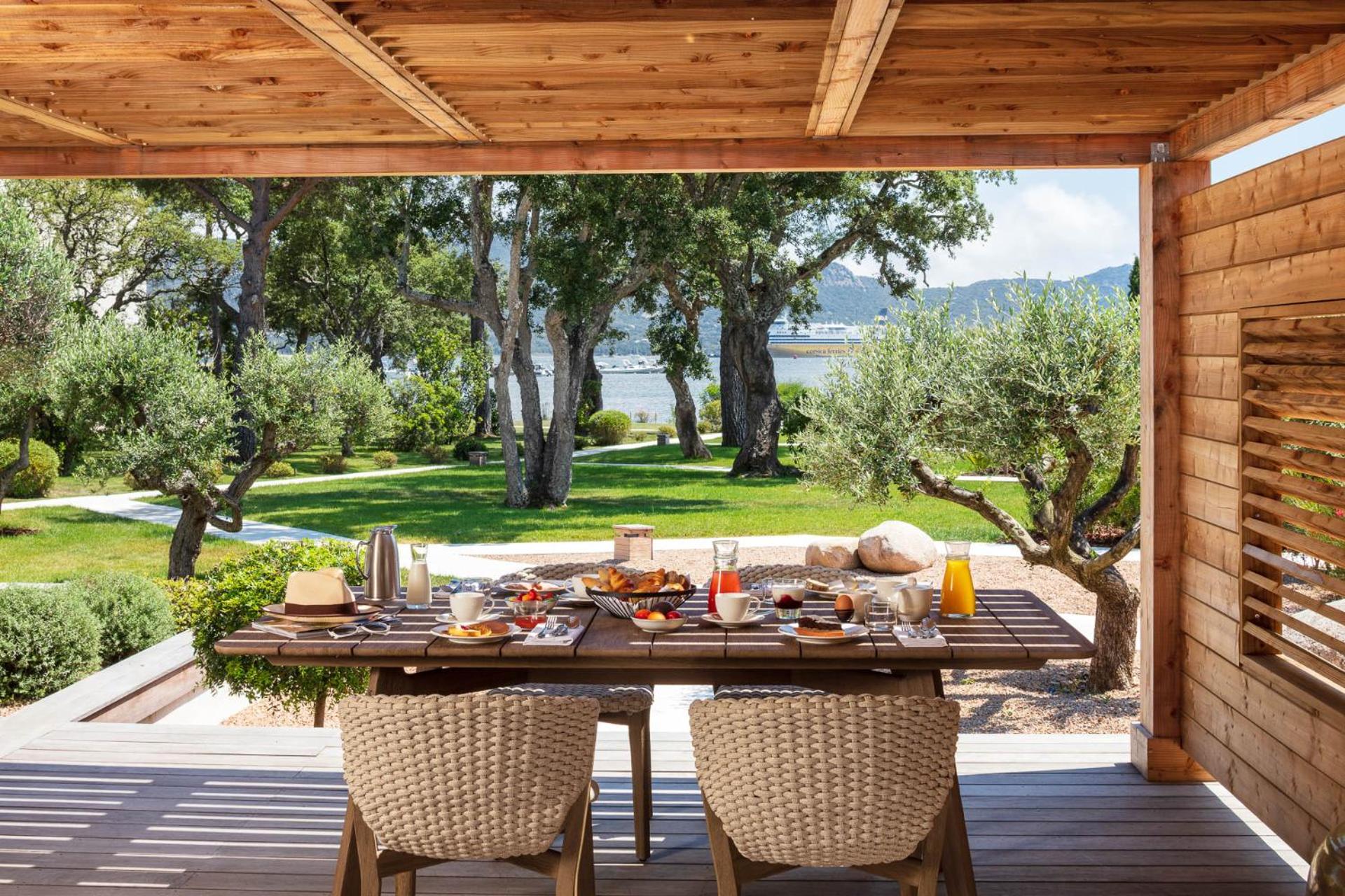 Elegant Rooms with Views: The air-conditioned rooms and suites boast spacious layouts, individual terraces with stunning views of Porto Vecchio Gulf, and modern comforts like free Wi-Fi and satellite TV.
