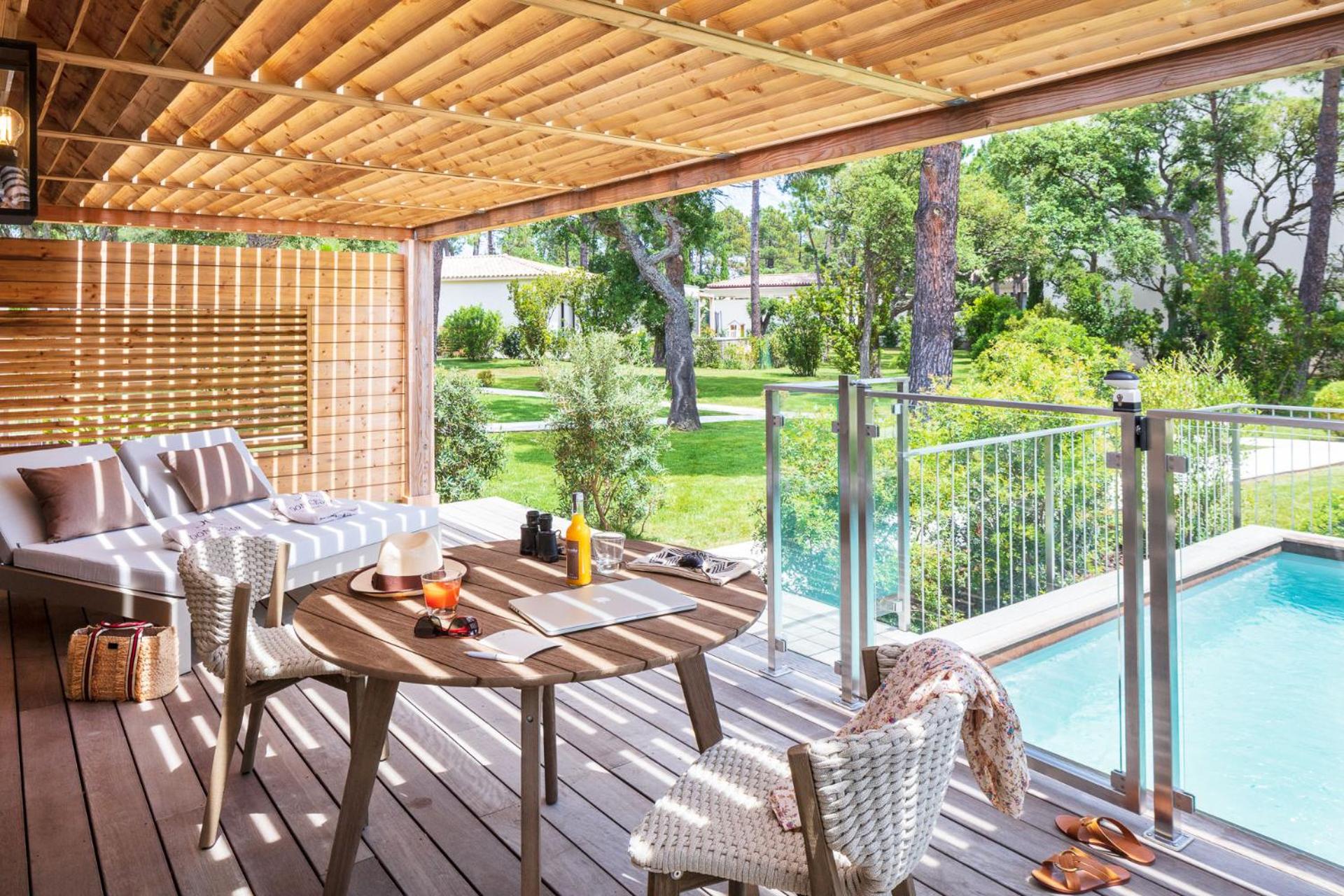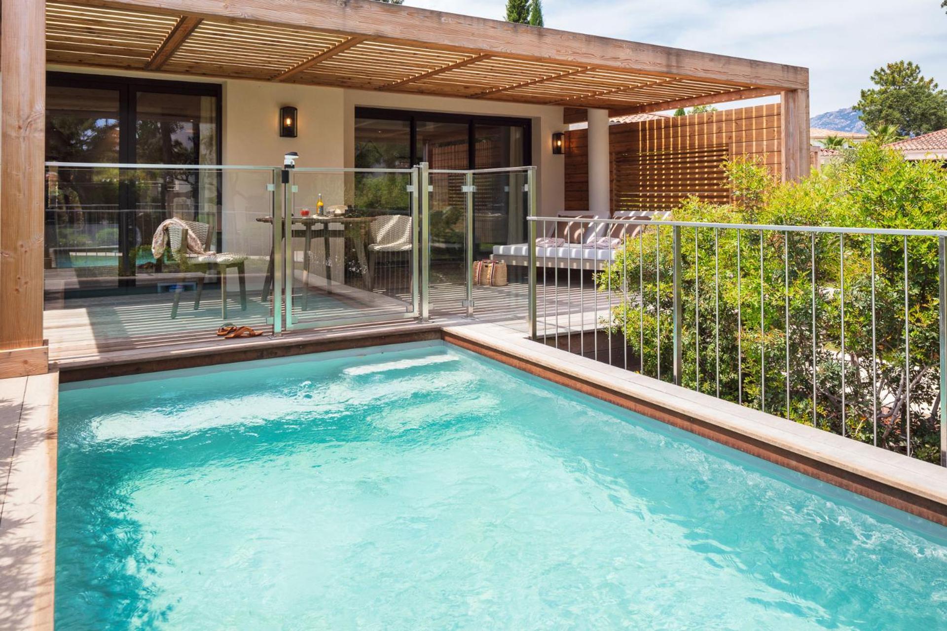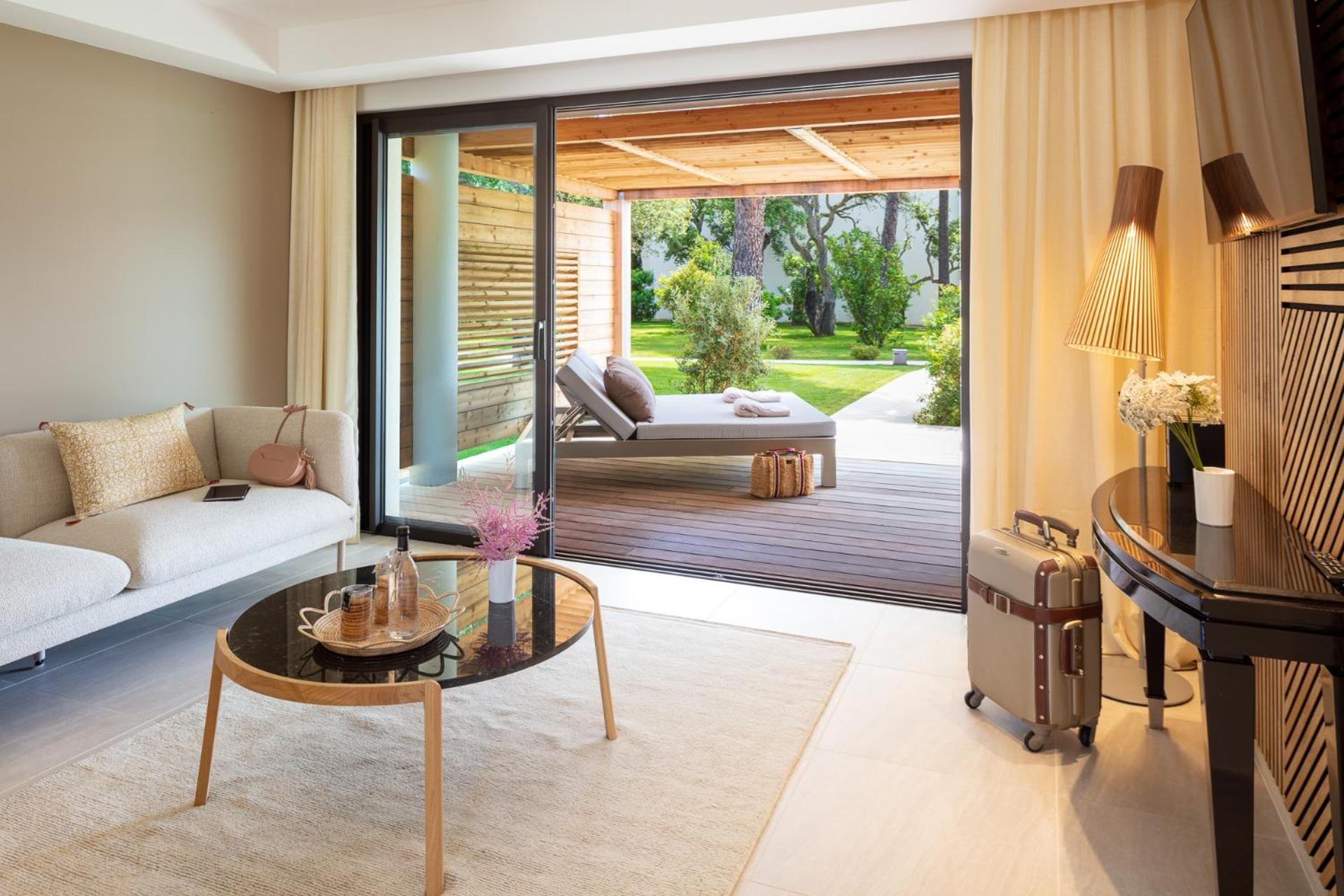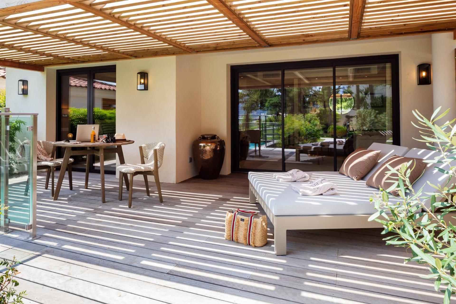 Elegant Rooms with Views: The air-conditioned rooms and suites boast spacious layouts, individual terraces with stunning views of Porto Vecchio Gulf, and modern comforts like free Wi-Fi and satellite TV.