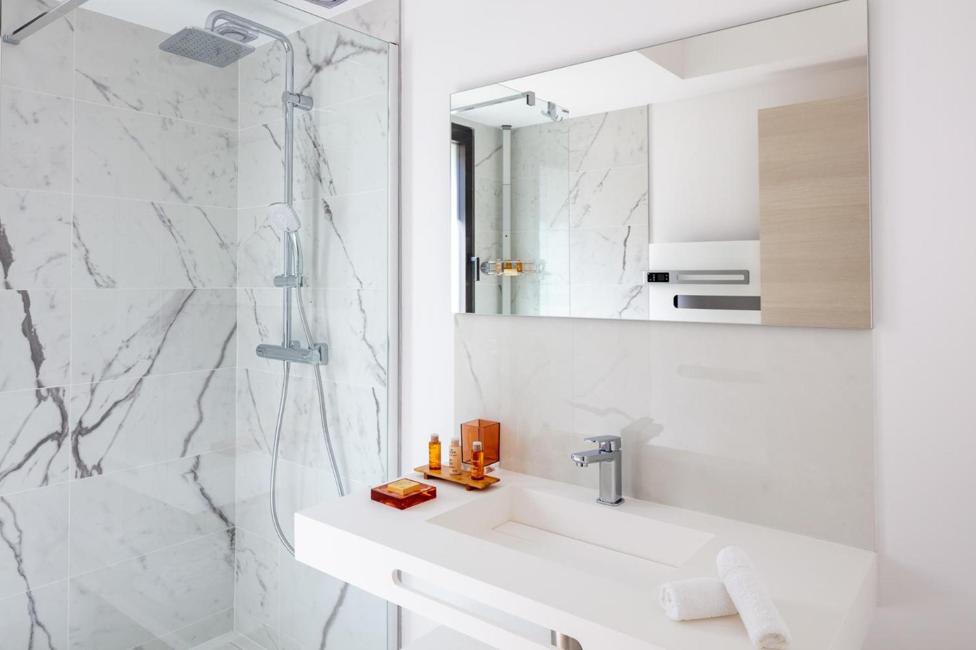 Beauté de l’endroit, confort des chambres( grande chambre avec terrasse, salle de bain avec douche et baignoire, WC séparé). Bon petit déjeuner. Belles piscines ( un peu fraîche) et micro-plage (!)