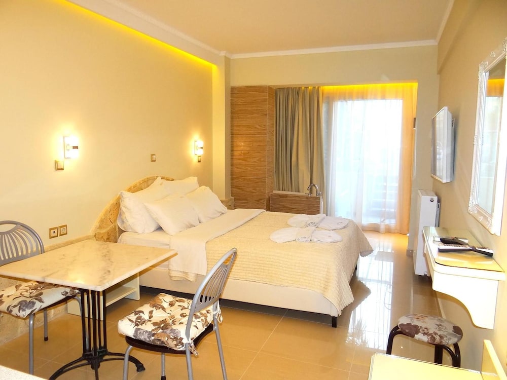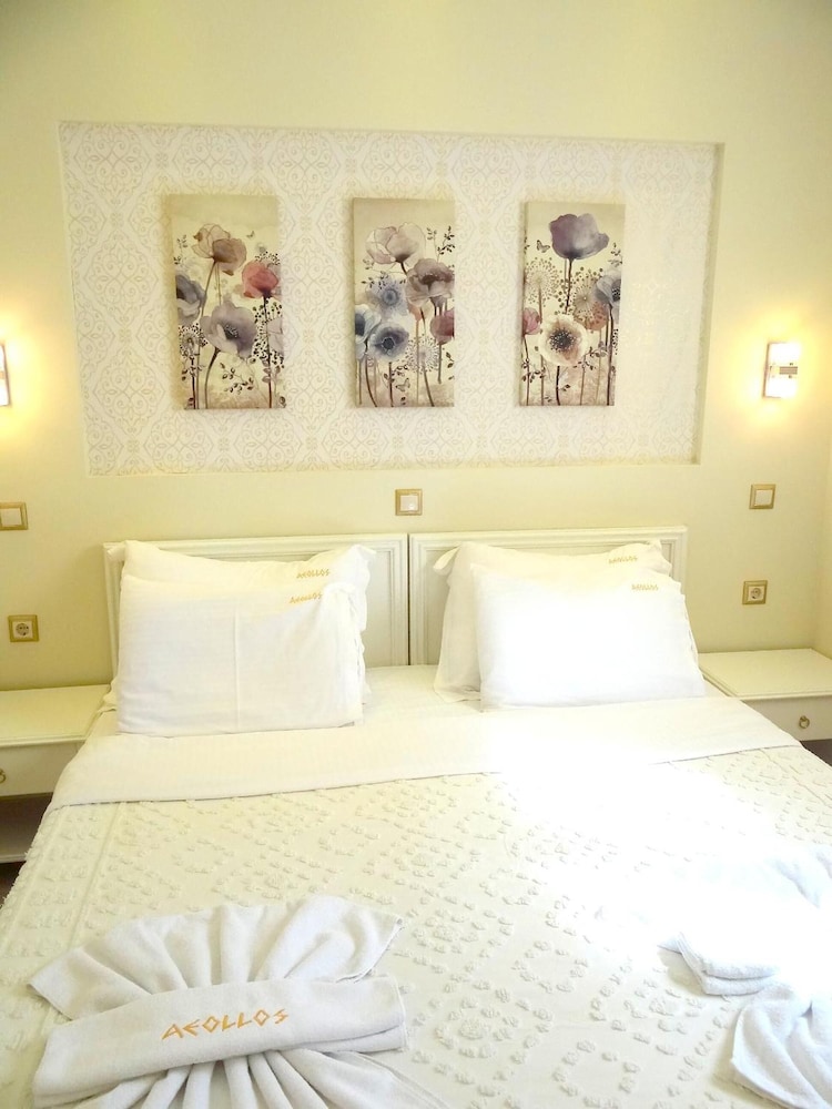 We were delighted with the Aeollos hotel - it was great value, the rooms were great with everything we needed, the bar was nice and good value, there was a lovely little pool and you didn't hear any noise despite being so close to the beachfront bars and restaurants. Of particular note was the amazing welcome from the owners and staff who were just brilliant throughout - friendly and welcoming, helpful and always around to have a chat. The restaurant which they run on the beach just a couple of minutes walk away is also excellent with outstanding seafood, again with the same warm welcome.