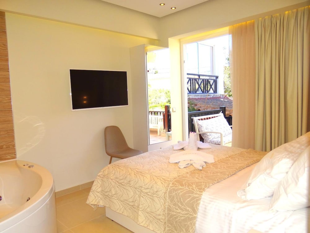 Indulge in the seasonal outdoor pool, bicycles for rent, and concierge services at Hotel Aeollos.