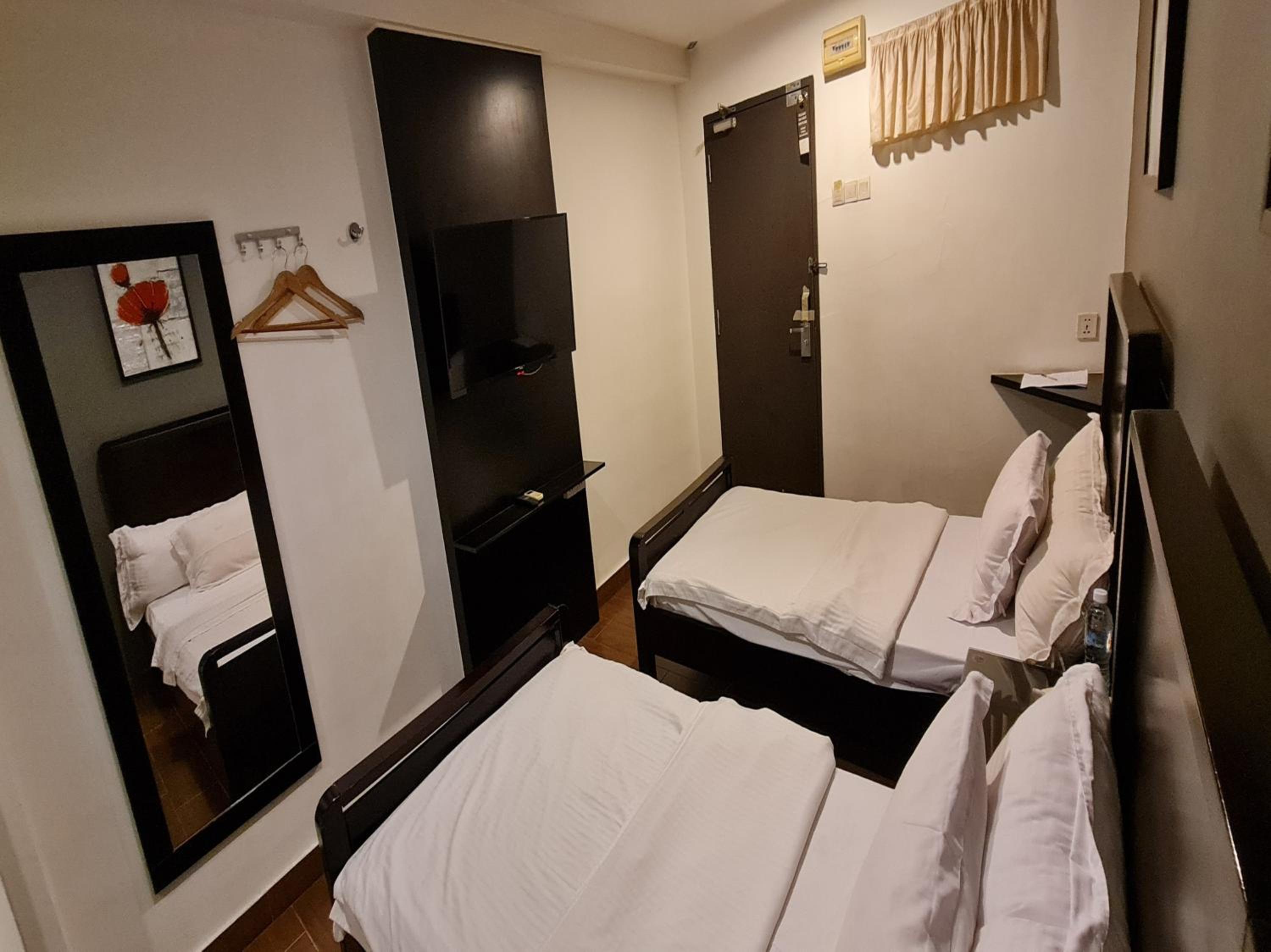 The room are big,the toilet is nice,near to convenience store,restaurant and shop.have fridge and fan,the customer service is okay