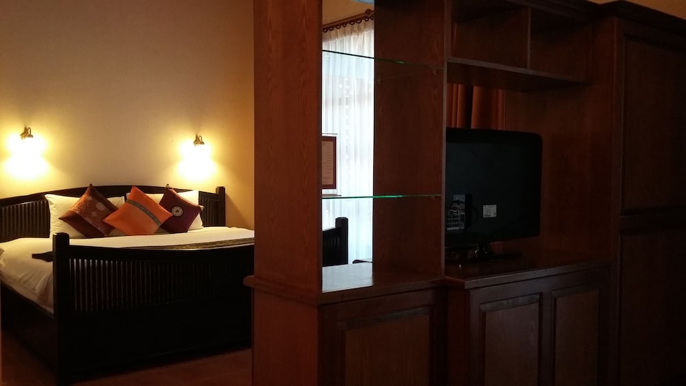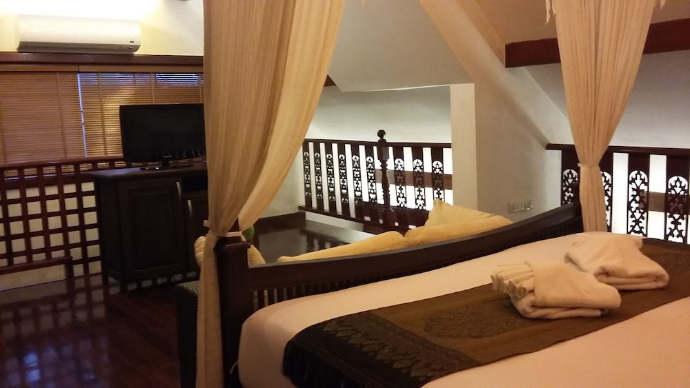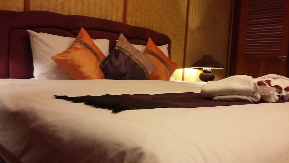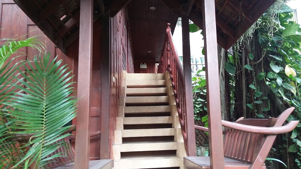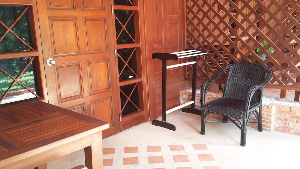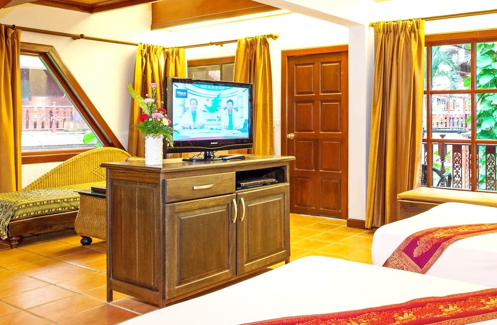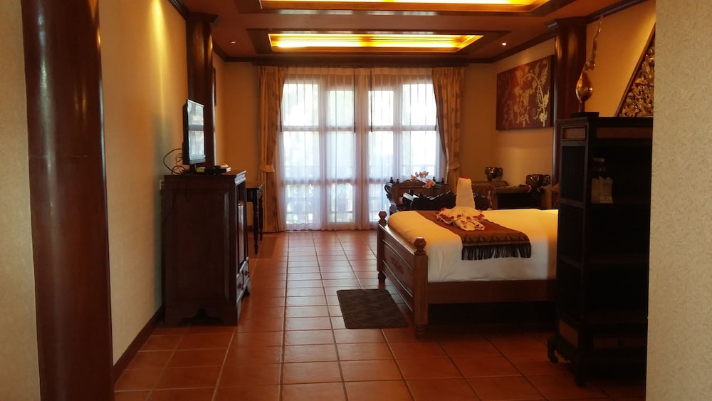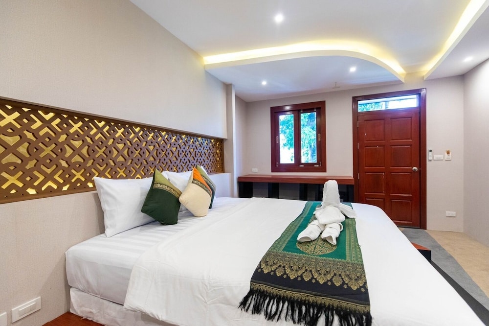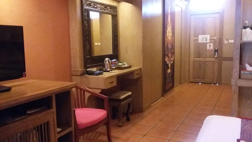 Lovely traditional thai style architecture, beautiful tropical garden nice pool good breakast and very near the Beach - but a GBP 70 Room deposit with no prior warning at booking stage - and although I was given a nice Room upgrade - really noisy aircon and a basic fridge that went noisy unless the aircon was on.... Also Rooms at the front some outside noise at night .... So still really nice - but some things they should work on ...