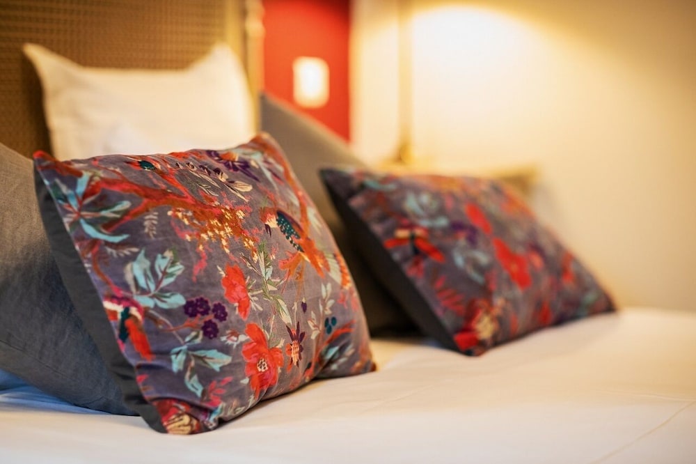 Stayed here a few nights with a group of friends. This is a nicely located hotel three or four minutes walk into the town centre. There is lots of parking immediately opposite. Being an old building brings with it lots of character as well as rooms being scattered about over several floors. There is a very small lift, thankfully, that will take guests up to the 1st and 2nd floors. Many rooms however will still require climbing some steps. The rooms vary in size and shape. The first room allocated was itself divided on two floor levels, with a step between, but reception were most helpful and provided an alternative. Although in the annex and smaller, it was perfectly fine. All bedrooms appear to have modern bathroom fittings and were very clean and nicely maintained. All the staff were pleasant and helpful. Breakfast was buffet style and, perhaps a bit unusually, included a hot selection as well as continental. Our party took evening meals together in the hotel which was nicely served and to most people’s taste. The hotel's restaurant is popular with local groups for evening party meals. Vegetarians were catered for. Nice selection of local wines from the small bar area. While sadly there is no hotel lounge, the hotel does have tables and chairs immediately outside which makes for a pleasant area for an evening drink in pleasant weather.
