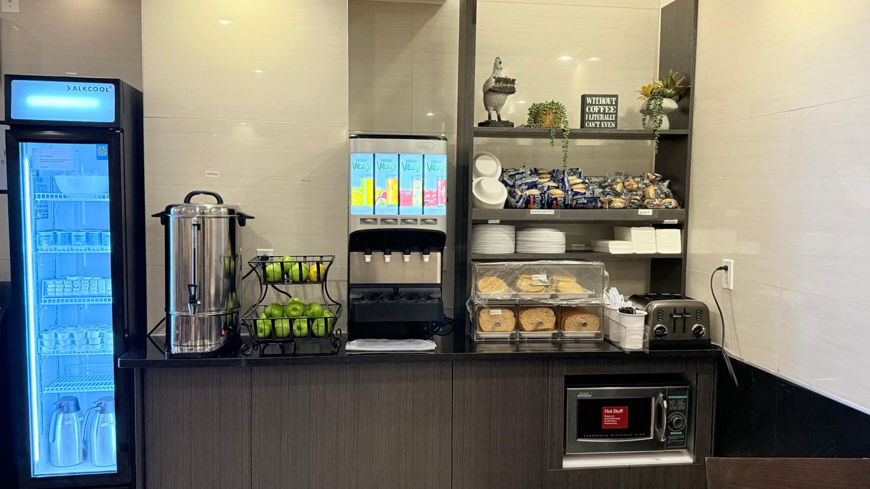 Não tem cofre. Não tem banheira e cortina é curta e molha bastante o banheiro, exigindo limpeza diária, o que sempre nos foi concedido e é excelente, devo registrar. A cama é muito mole, além de ser pequena (de casal). O banheiro é extremamente frio, o ar condicionado muitas vezes não dá conta de aquecê-lo com eficiência, sem deixar todo o quarto quente demais. O café da manhã não pode ser chamado de breakfast, não tem uma proteína sequer, apenas pão de forma, waffle, bagels, além de café, frutas: maçã e laranja, sucos industrializados, isso foi decepcionante.