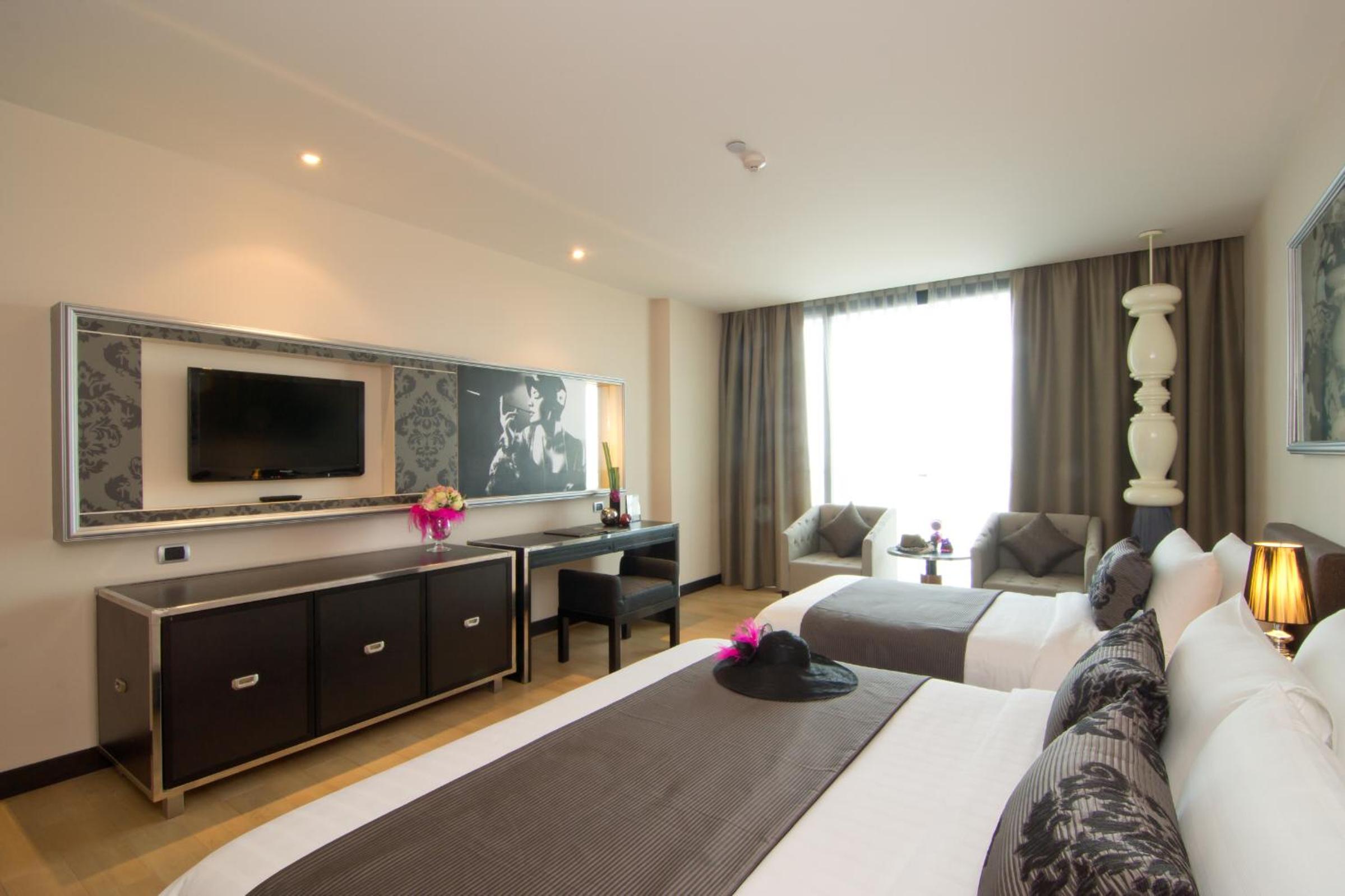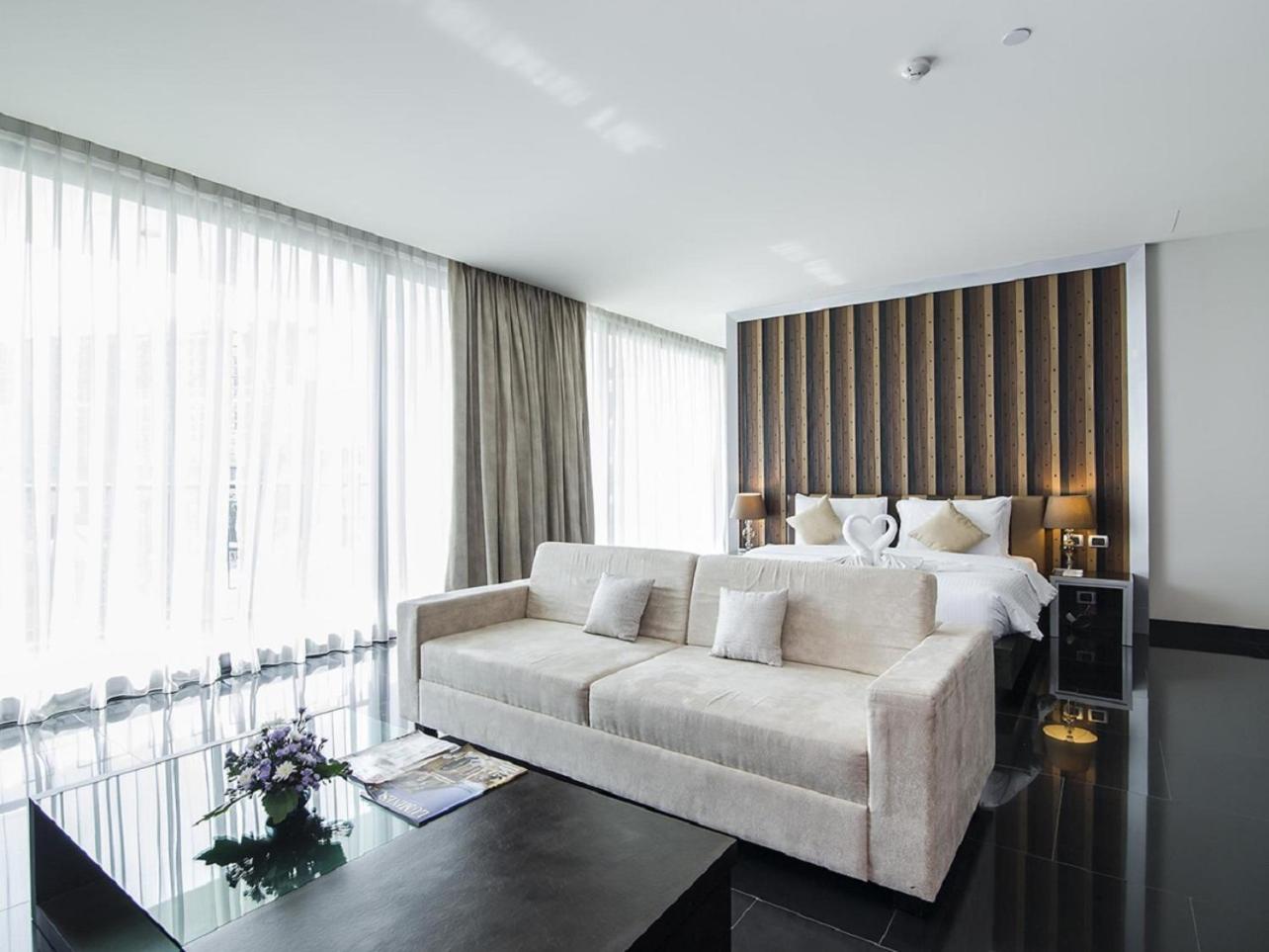Way Hotel Pattaya offers a luxurious stay with stylish interiors and private balconies in each room. The modern decor and floor-to-ceiling windows provide a touch of elegance, while amenities like a flat-screen cable TV and bathtub ensure a comfortable experience.