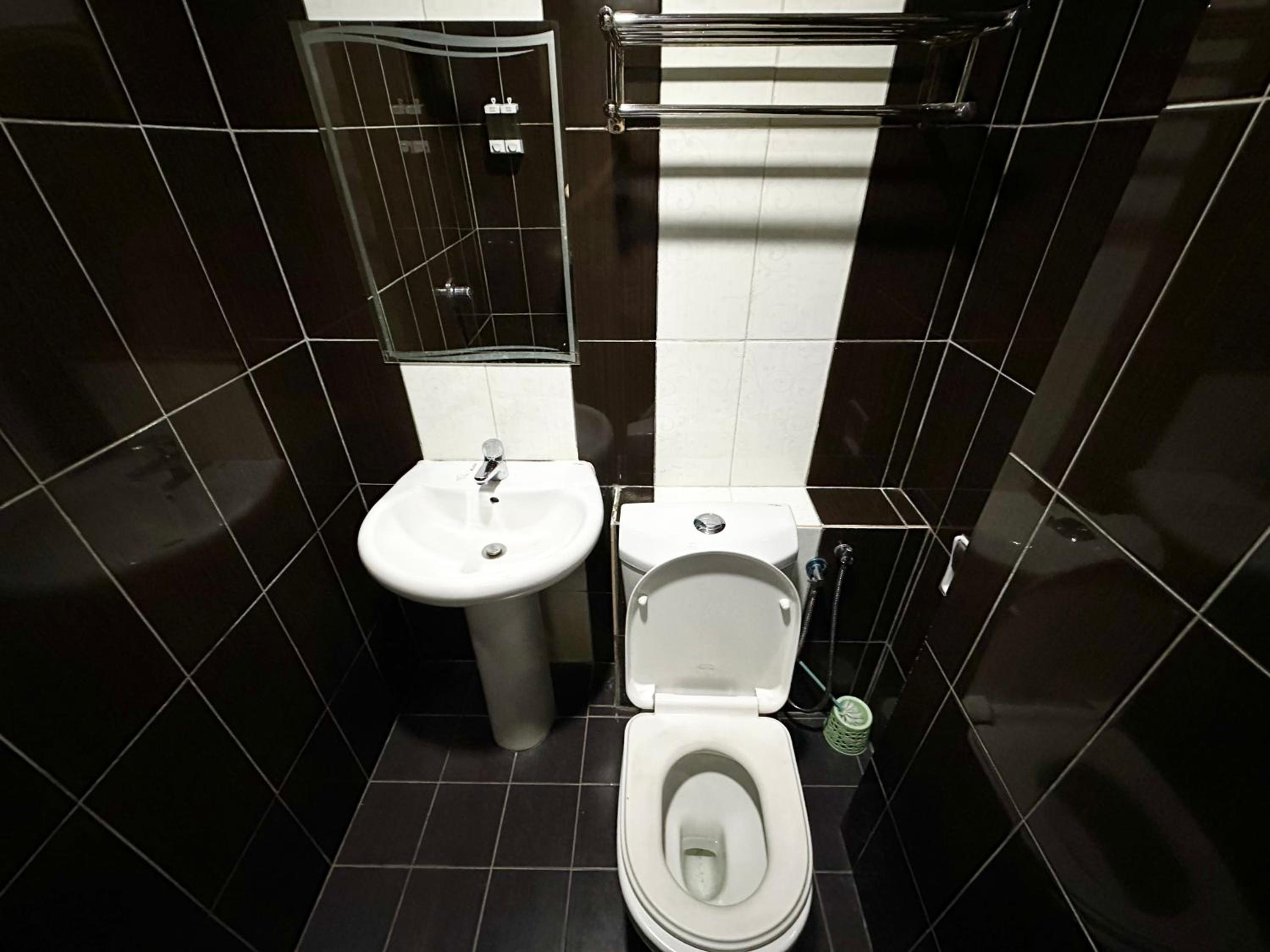 Die Klimaanlage schepperte, das Wasser stand in der Dusche, die Toilette war nur seitlich nutzbar, da man mit den Knien sonst in der Wand hing. Laut von draußen.