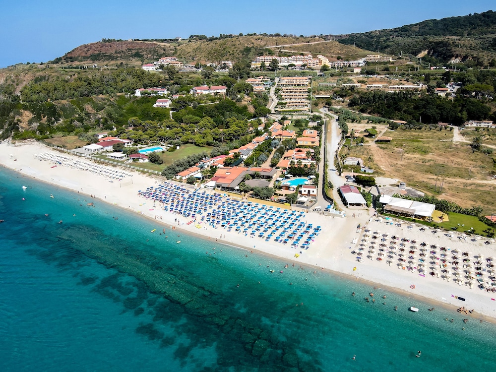 Beachside Bliss: Enjoy a private beach and seasonal outdoor pool at Hotel Scoglio del Leone.