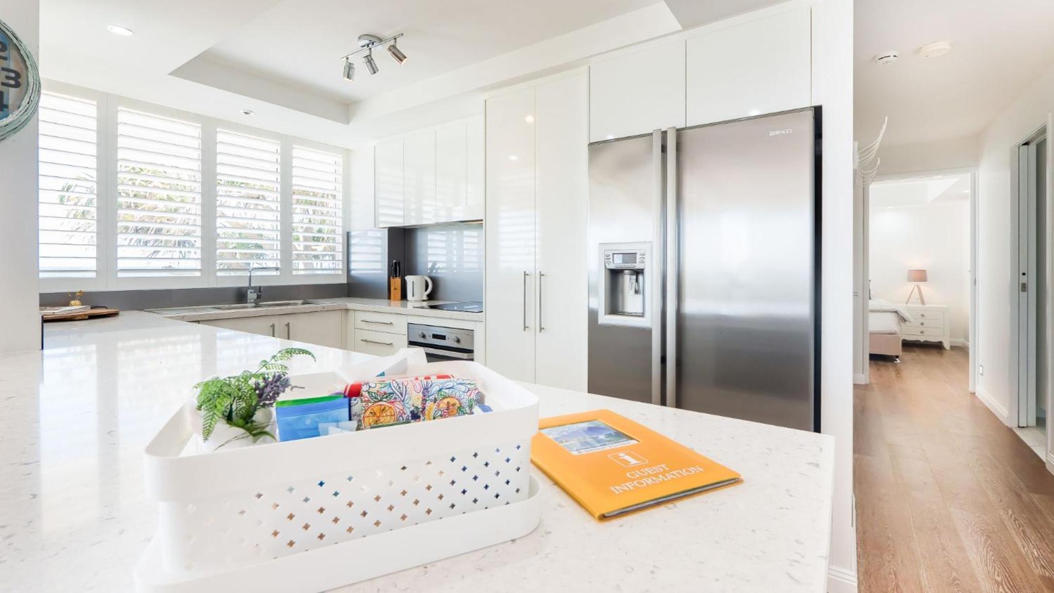 The apartment on the most part was good, however there were ants in the kitchen that were getting into our food and in the rubbish bin. Only two coffee pods, dishwasher tab, one rubbish bag and two spare thin toilet rolls (not great quality) were provided. For a 5night stay I was disappointed. These small low cost items make a huge impact on impression and convenience which is an easy fix for the host. One of the frying pans was buckled so badly and coating damaged it could not be used. The coffee machine had not been cleaned and still had used pods inside it. The ensuite bathroom was very dated and in need of a deep clean. There was visible black mould in the shower, extractor unit in wall was dirty, dusty and black and the odor of mould was strong. On one occassion there were two baby roaches climbing the shower head. The main bed had one single lightweight waffle blanket that was stained on at least five areas.