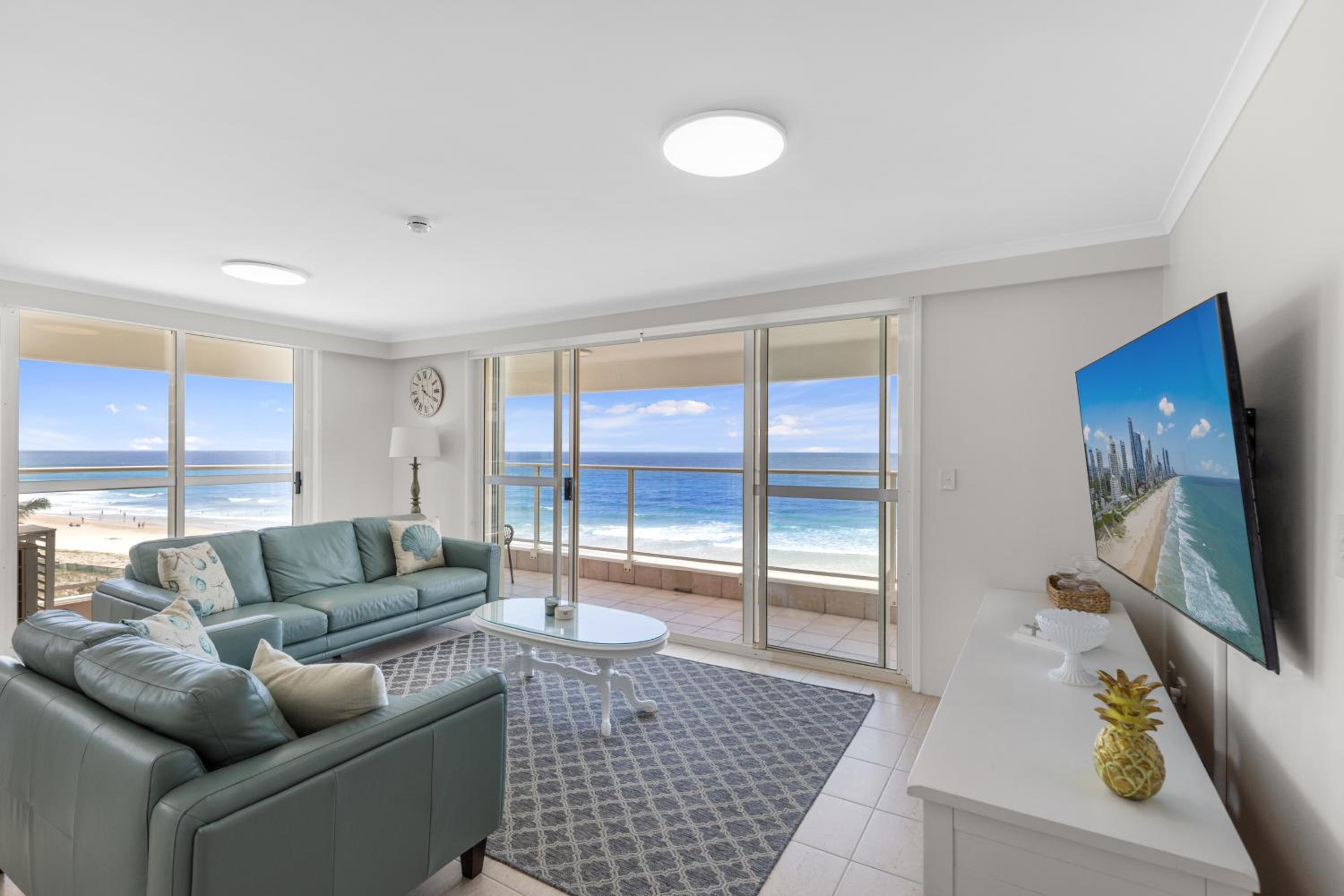 The location is exactly as described, beach front with great view, easy access to beach. Layout of the three bedroom apartment was great, with a super comfy leather lounge suite and great air con in each room. The walk in robe was well appointed.