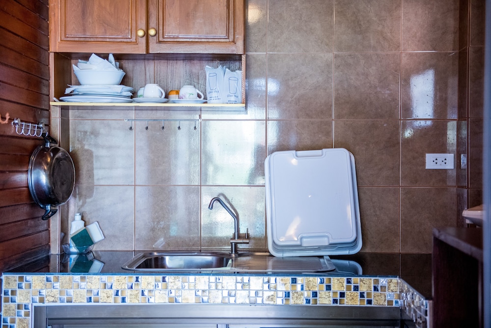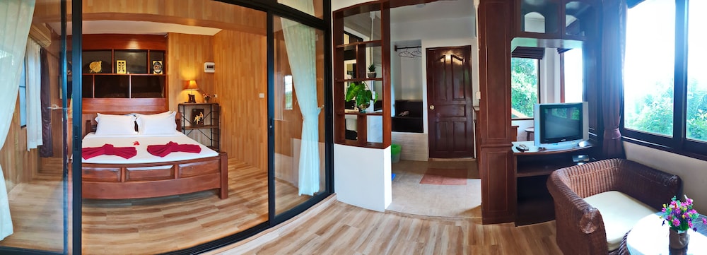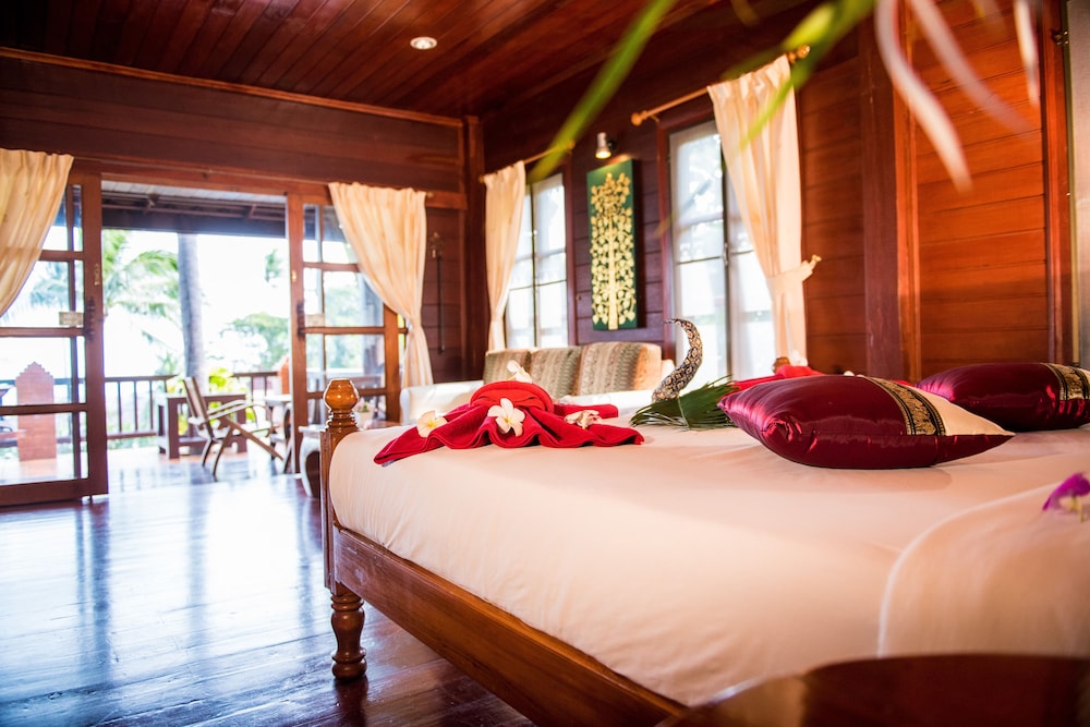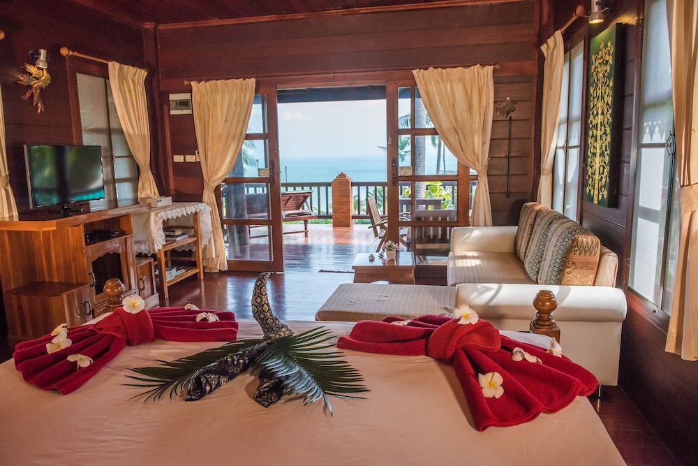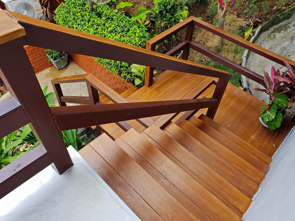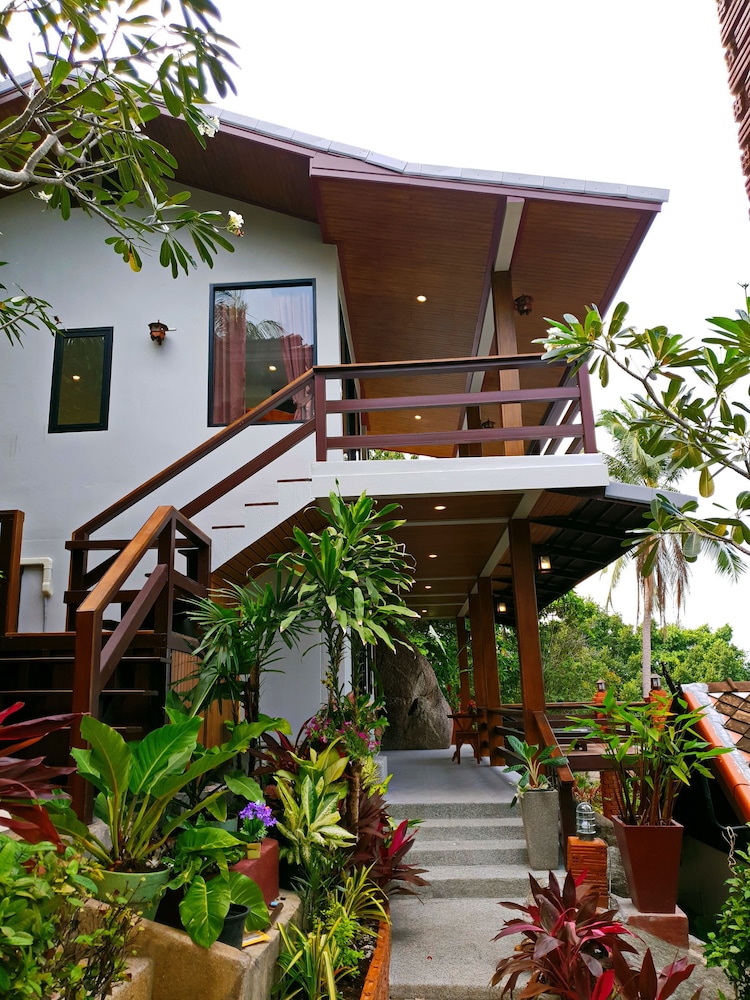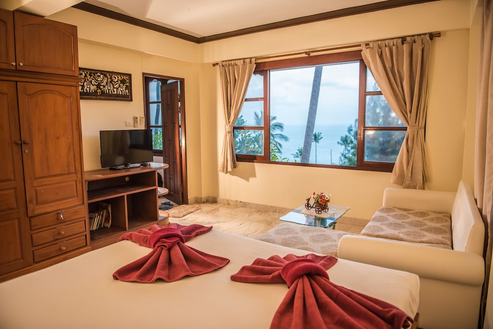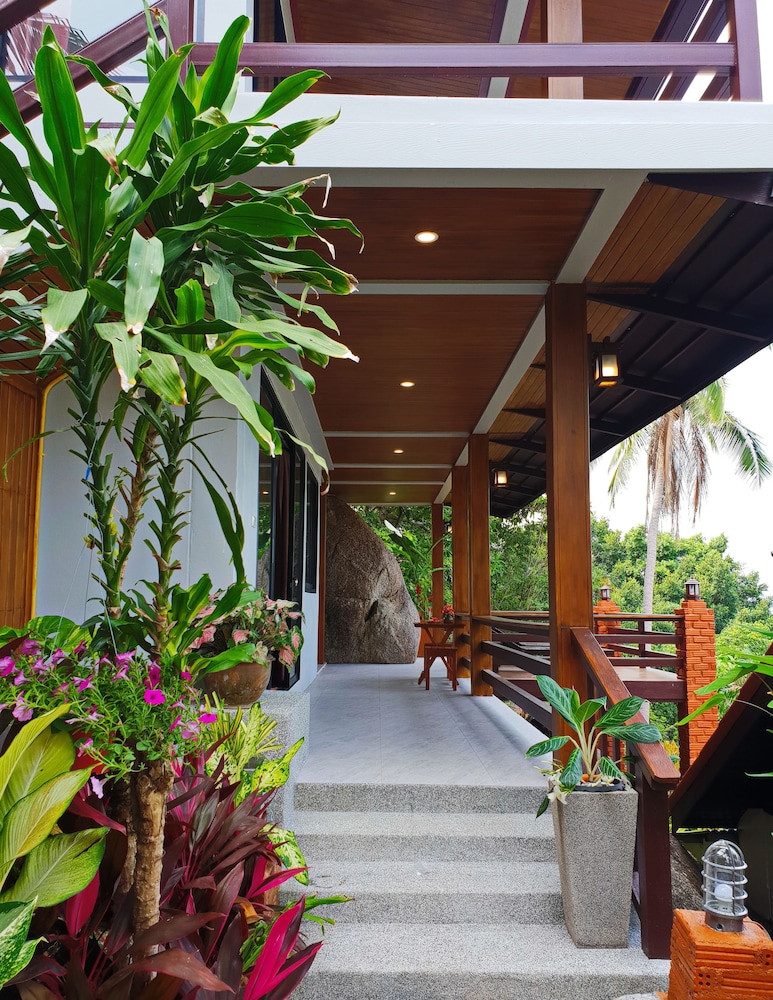 Vi er et par som tilbrakte 5 dager på hotellet like etter ankomst Thailand. Hotellet er et svært bra sted for å slappe av, personalet er svært serviceinnstilt og renholdet er svært bra. Hotellet ligger i en svært bratt bakke og det er mange bratte trapper opp til bungalowene. Det er ikke enkelt å komme seg til strand, butikker etc. på egenhånd, selv om personalet gjerne kjører deg - for 300 ThB hver vei. Internett er ustabilt og TV-kanalene lite interessante. Hotellet serverer frokost, middag og lunsj kan kjøpes på et hotell like ved og er førsteklasses.