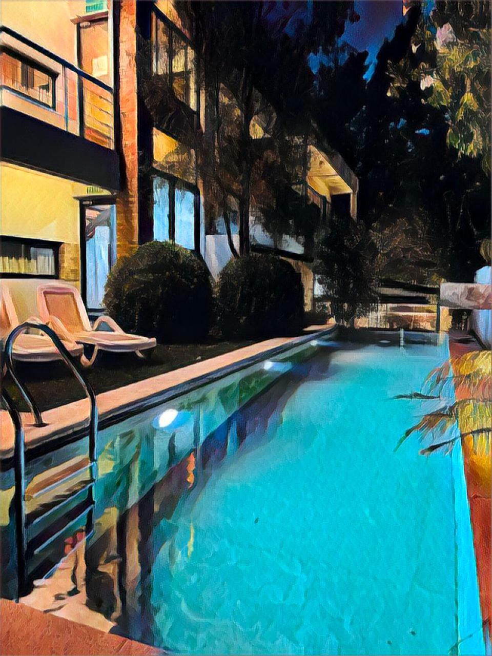 Eine zentrale und doch ruhige Lage, schnell ist man von der Fähre dort und weiter im historischen Viertel. Das Wasserbecken ist kein großer Pool, aber ausreichend für eine entspannte Abkühlung.