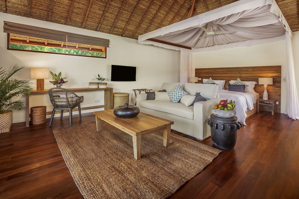 Kan inte tänka mig bättre service. Allt man behöver kan man ringa efter och personalen är snabba, vänliga och omtänksamma. Maten är jättegod, poolen fräsch och fin. Detsamma gäller för boendet (vi hade en villa med havsutsikt). Gratis cyklar som man kan låna för att cykla runt ön - rekommenderas! När vi skulle vidare ordnade hotellet så vi blev hämtade med båt direkt vid stranden. Har ingenting att klaga på. Perfekt!