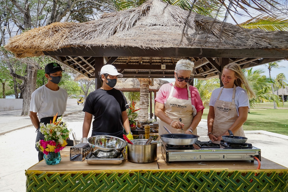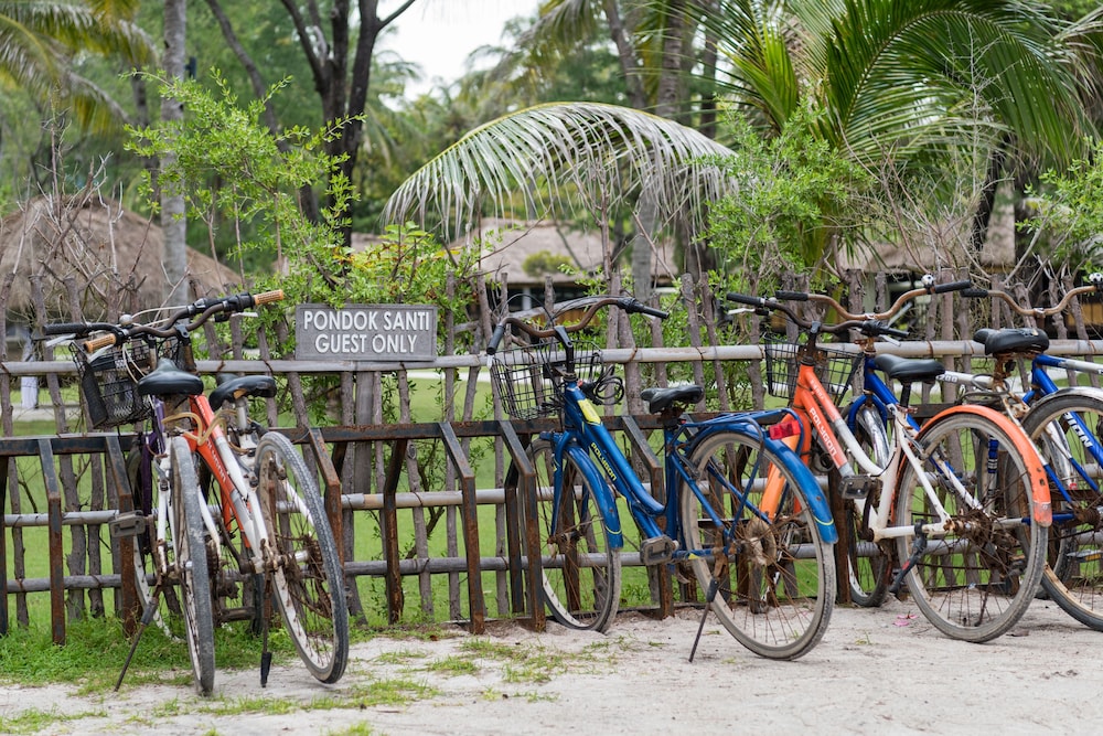 Vi har haft 8 dejlige nætter på Pondok Santi. Vi har nydt det skønne bungalow med det mest fantastsike udendørs badeværelse, stranden, polen og de lækreste dobbel sunbads. Ud over rengøring kommer personalet også om aften og gøre klar til en god nattesøvn ved at sætte mygnet omkring sengen og endnu engang gøre værelset nydelig og velduftende. Personalet har været super hjælpsomme, smillende og søde gennem hele opholdet. For ikke at glemme at, nævne deres helt fantastsieke morgenmenu hvor man dagen forinden frit kan sammensætte ens eget morgenmad samt frit vælge om man ønsker at indtage den på stranden, ved poolen eller i sin bungalow. Restauranten er den flotteste på hele øen og maden er i top, især deres gril menu og den bedste søde, røgede kartoffelmos, det skal prøves. Hotel stiller også gratis cykler til rådighed hvilket vi benyttede os af en del gange. Den park lignende have med de utrolig smukke hvide fliser, lader den kølige brise fra havet bræde sig ind over hele resortet som er med til at holde temperaturen begalig dagen igennem. Super mange tak til de sødeste og utrolig arbejdsomme personale
