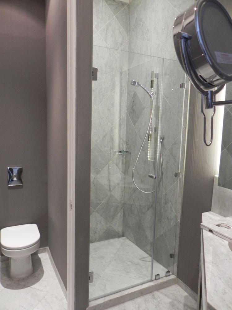 This hotel has two drawbacks - it is in a complete state of neglect on the inside and is in a very grimy part of town. The first two photos show the entrance from the outside and inside. The third photo shows our shower. If you are smart you won't venture as far as a shower. It's the first time in my life that I have showered in flip-flops. We left after the first night and found a much more pleasant hotel further up the hill.