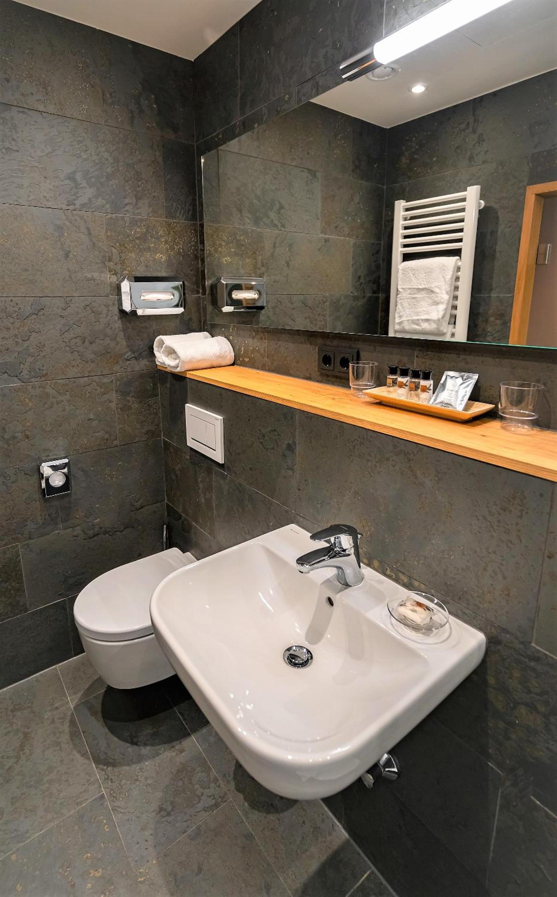 Im Bad nur ein Heizstrahler.