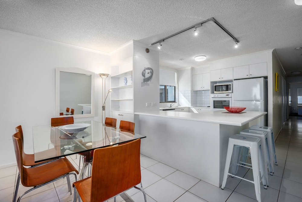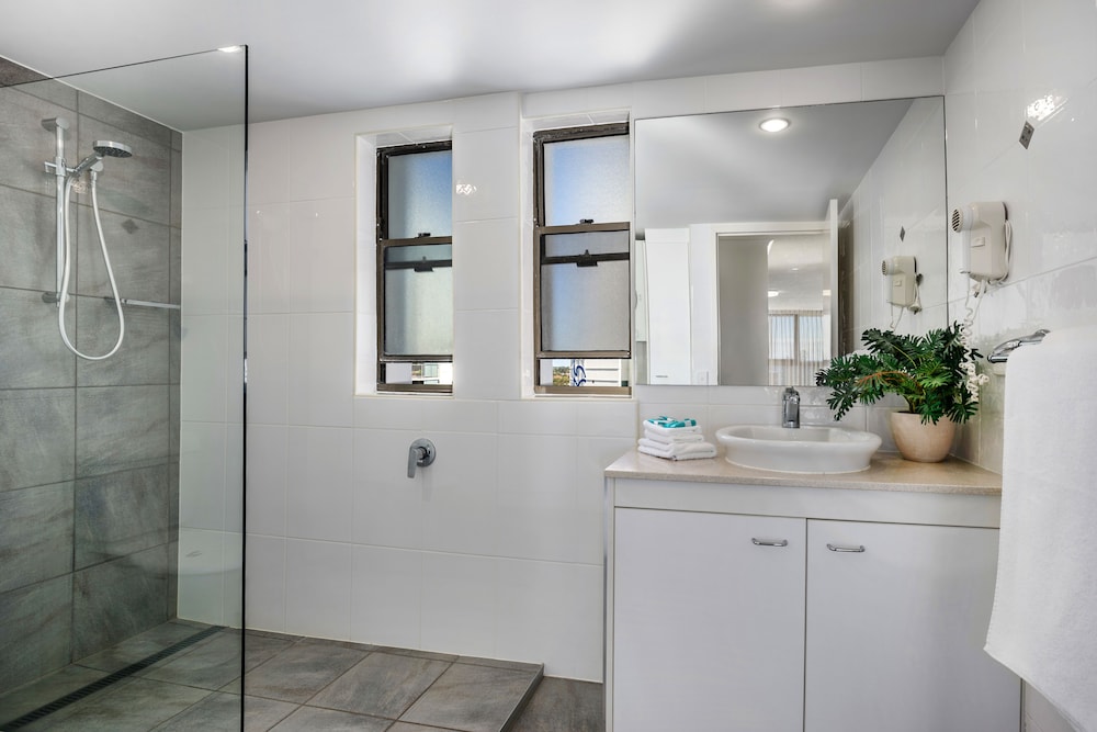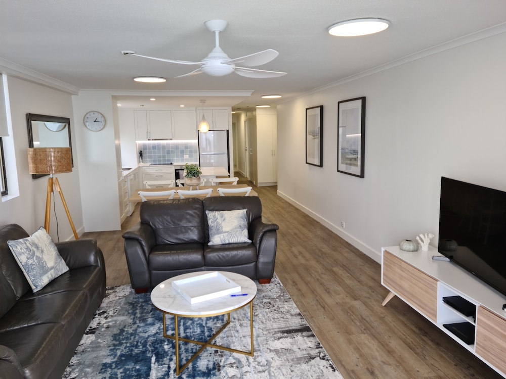 It’s an older building and the kitchen/bathroom in our unit (#43) aren’t new, but they are well maintained and functional. The 180 degree beach view was spectacular. Being walking distance to everything Mooloolaba has to offer was great. The parking space for our unit was easy to get in & out of (not all parking spaces are created equal). The unit was equiped with everything we need. Coles supermarket is a short walk away.