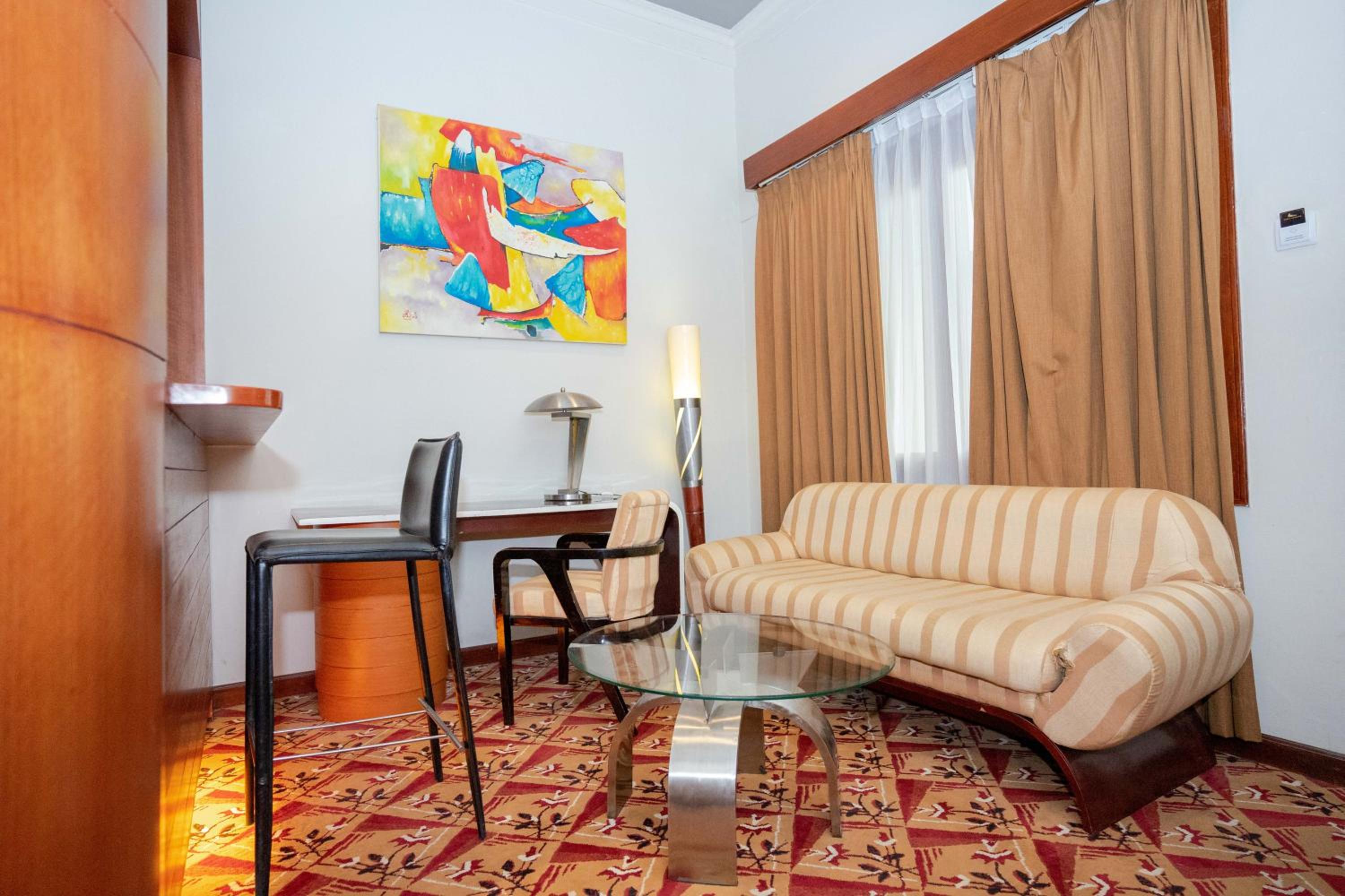 Hotel Savoy Homann is a stunning property housed within an iconic curved-shaped building in the heart of Bandung. The elegant rooms offer 4-star comfort with air-conditioning, carpeted floors, and classic wood furnishings, providing a luxurious stay for guests.