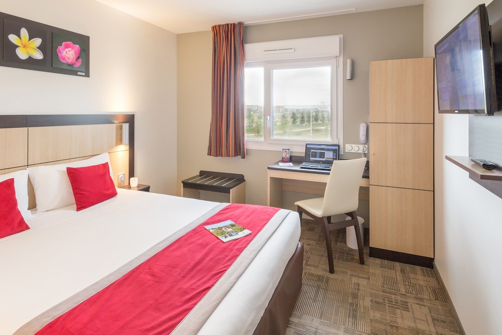Excellent hotel. We stayed here twice at either end of our holiday, to break up the long drive back to Calais. Really clean, modern rooms. Free secure parking and it's a 5 minute walk to the tram stop where you can get into the Cory center easily. Would absolutely recommend.