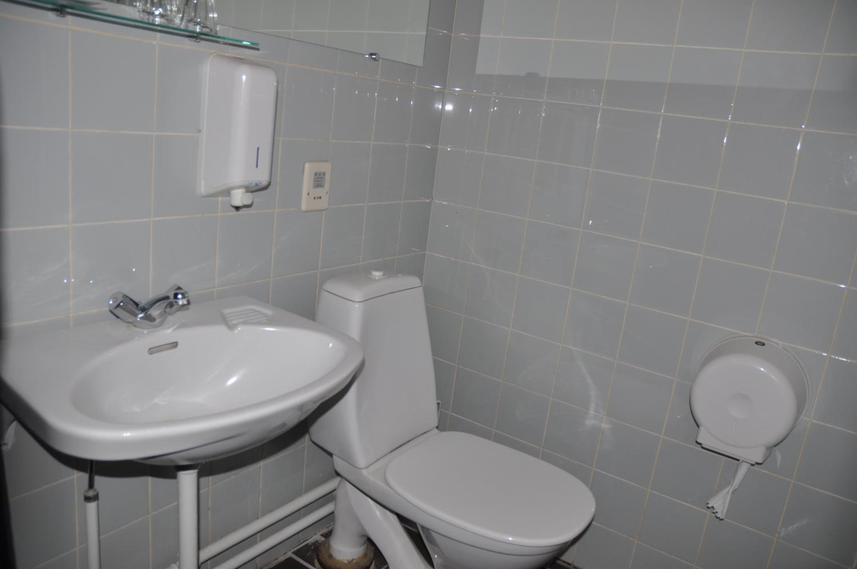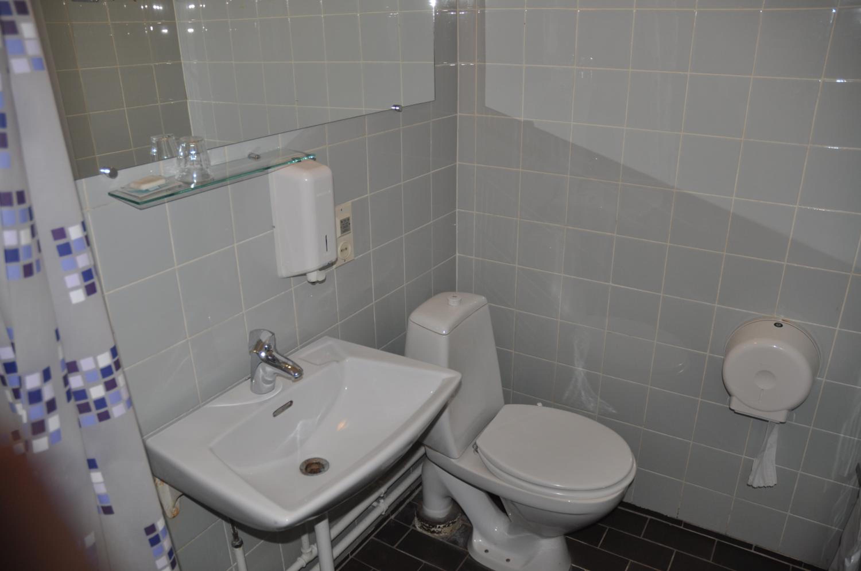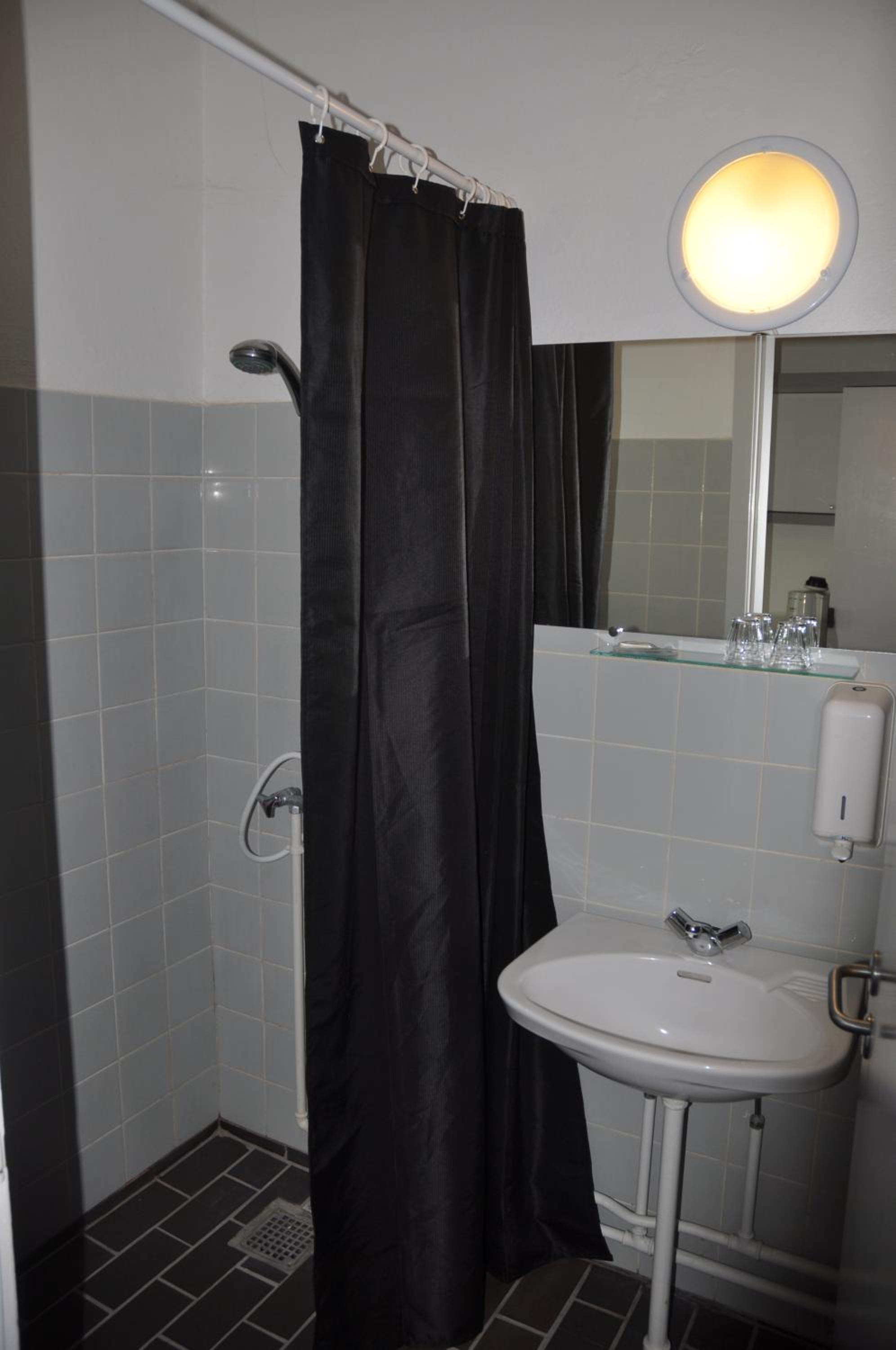 Fürchterliche Ausstattung, keine separate Dusche, Toilette in der Dusche, alles furchtbar alt und spartanisch
