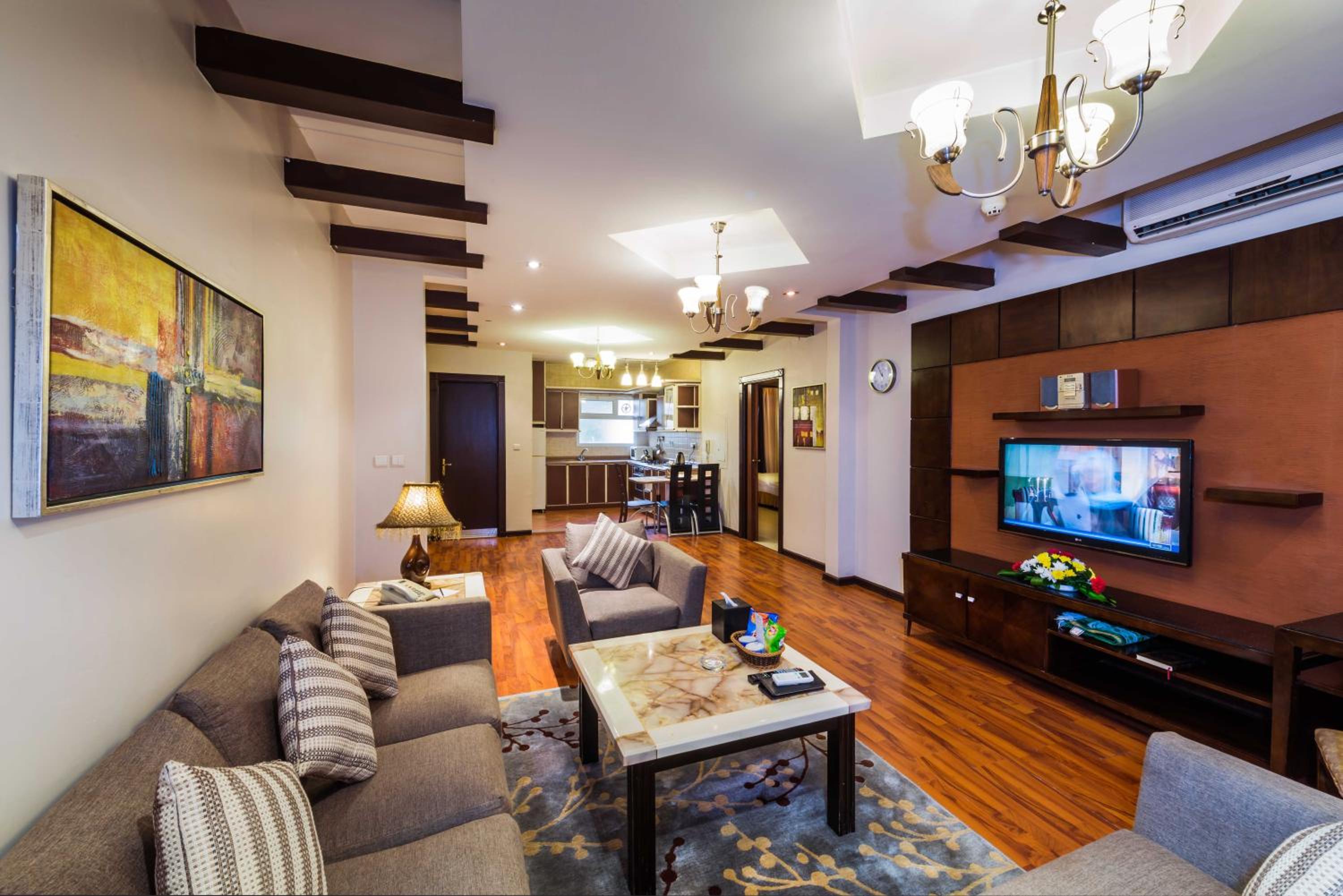 Located in Riyadh, the Boudl Al Malaz offers breathtaking panoramic views of the park. The cozy rooms, decorated in warm colors, provide a comfortable stay with modern amenities such as flat-screen TVs and free Wi-Fi.