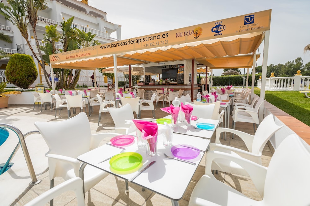 We are just leaving after a 10 night stay in la rosas de Capistrano. We cannot fault this place, the rooms are clean and spacious, the maintenance and housekeeping staff keep the grounds apartments and pool area sooooo clean and well looked after. Although it is a 15 minute walk onto nerja, it is more e than worth it. Ali, with his help at busy times are excellent hosts. Nothing is too much for them whether it's cooking excellent pizzas or recommending places to see and do. Thankyou. Have a good end of season, see you all again soon xx. 👋😢😁. Ps. If had to fault something, we had aid people finding rooms out of hours as the maps need reviewing.