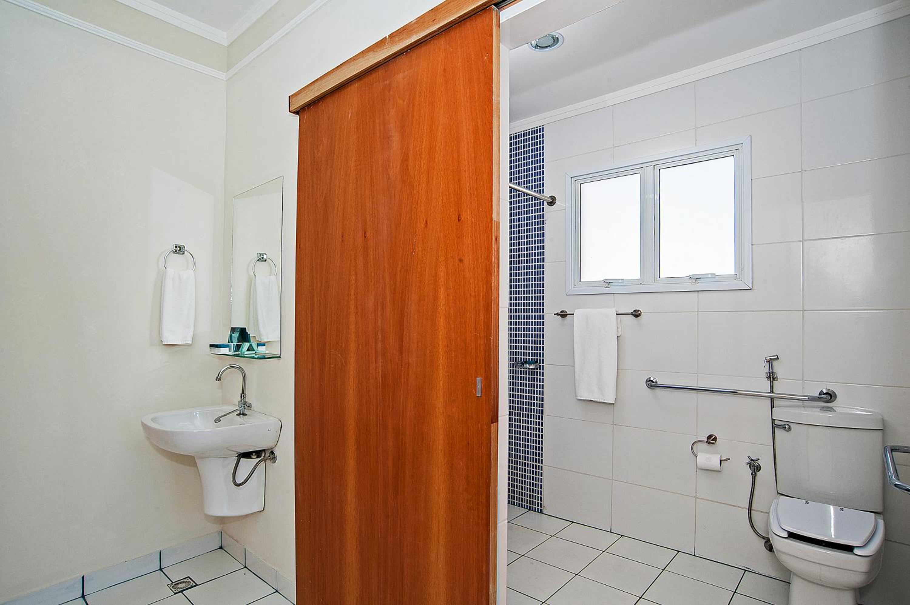 Quarto muito pequeno e banheiro minúsculo. Chuveiro com pouca água. Porta do banheiro velha e sem funcionamento adequado. Banheiro bem ruim, com pouquissimo espaço, pia muito pequena e com pouca água.