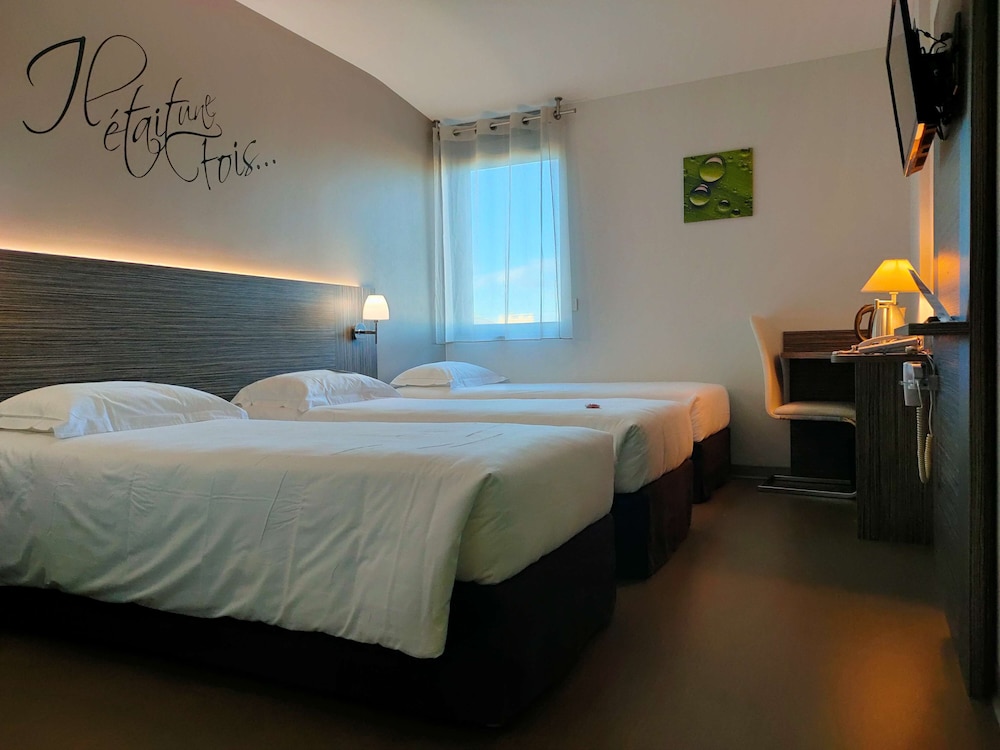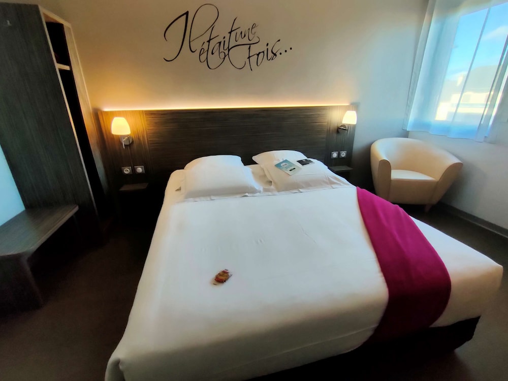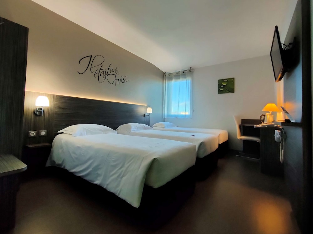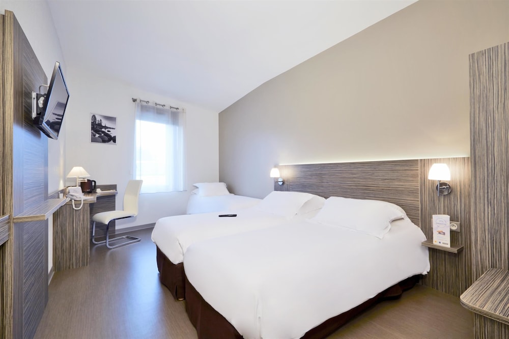 Hôtel sur le bord de l’autoroute très pratique lors de déplacements. Chambre très confortable literie et Sdb. J’ai occupé une chambre côté parking pas de bruit de la route. Personne a l’accueil très accueillante et souriante. Très contente d’avoir fait cette decouverte
