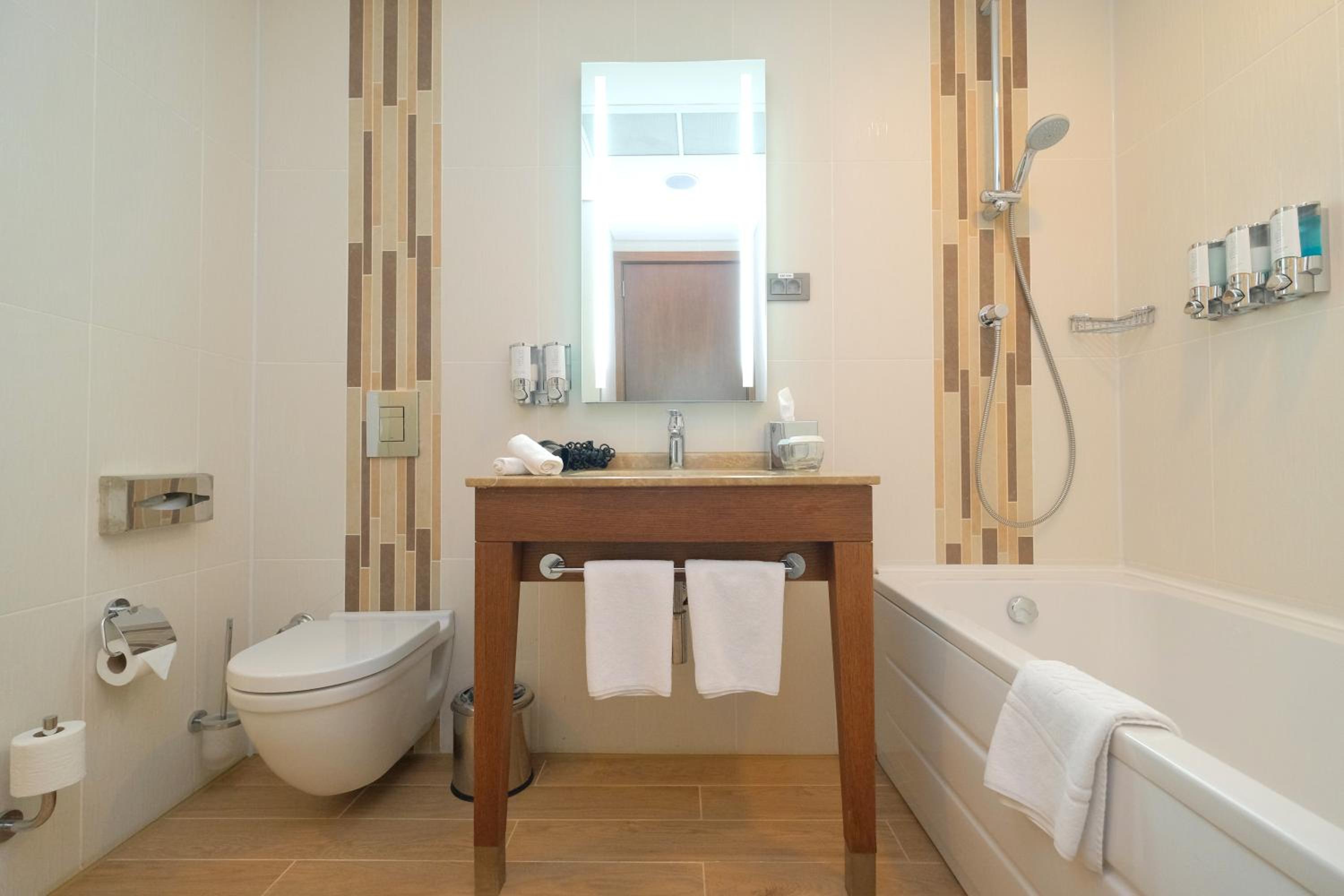 Experience luxury in every corner with flat-screen TVs, electric kettles, and mini fridges in each room. Unwind in your own private oasis with free toiletries provided in the modern bathrooms.