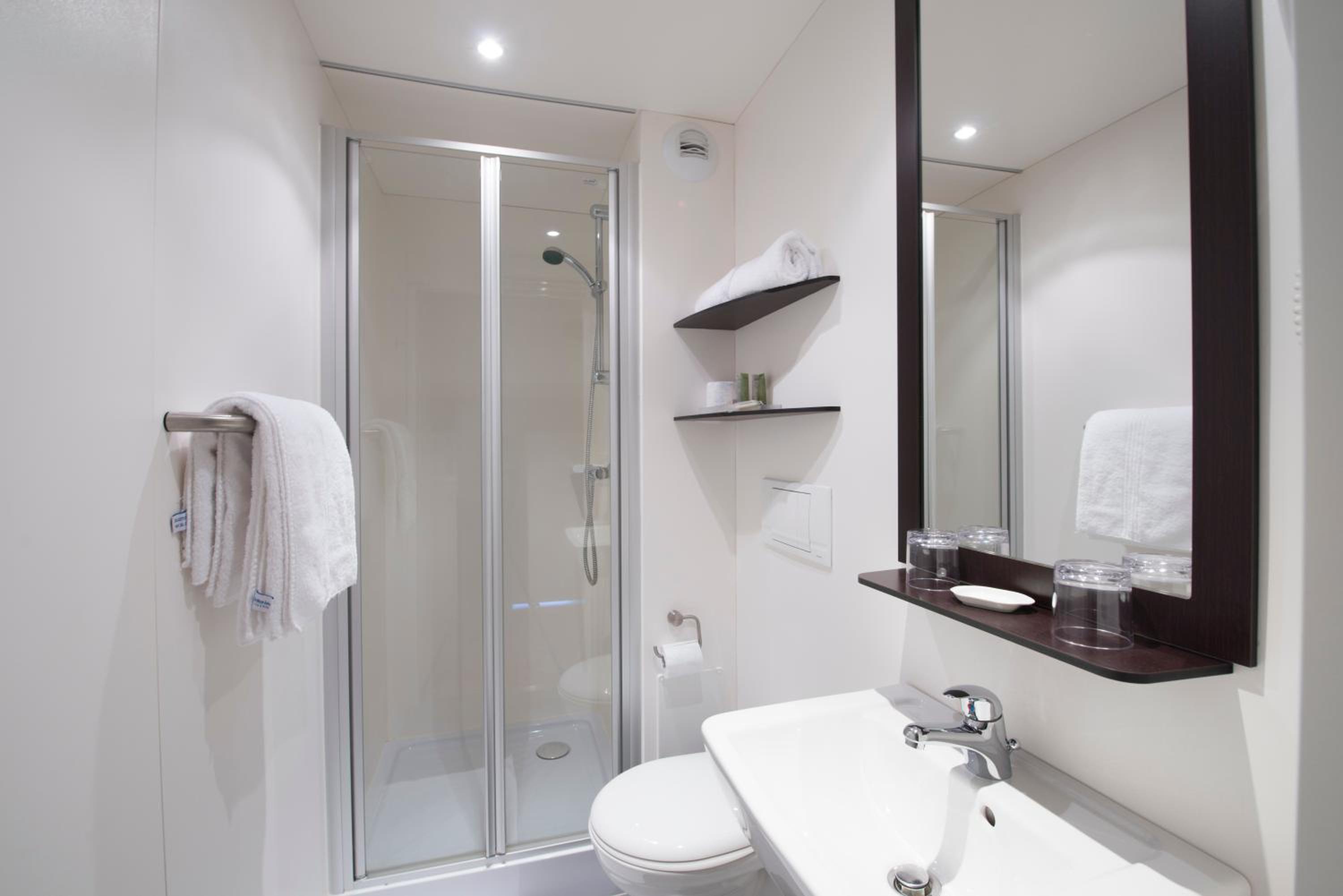 Salle de bain un peu petite en comparaison avec la chambre.