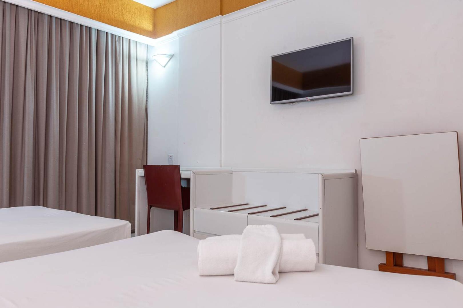 Quarto bem espaçoso, com cama confortável, frigobar, mesa para trabalho e bem equipado. Amei a localização, perto da praia e com vários comércios próximos. O atendimento foi excelente, com profissionais super atenciosos. Café da manhã muito bom também.