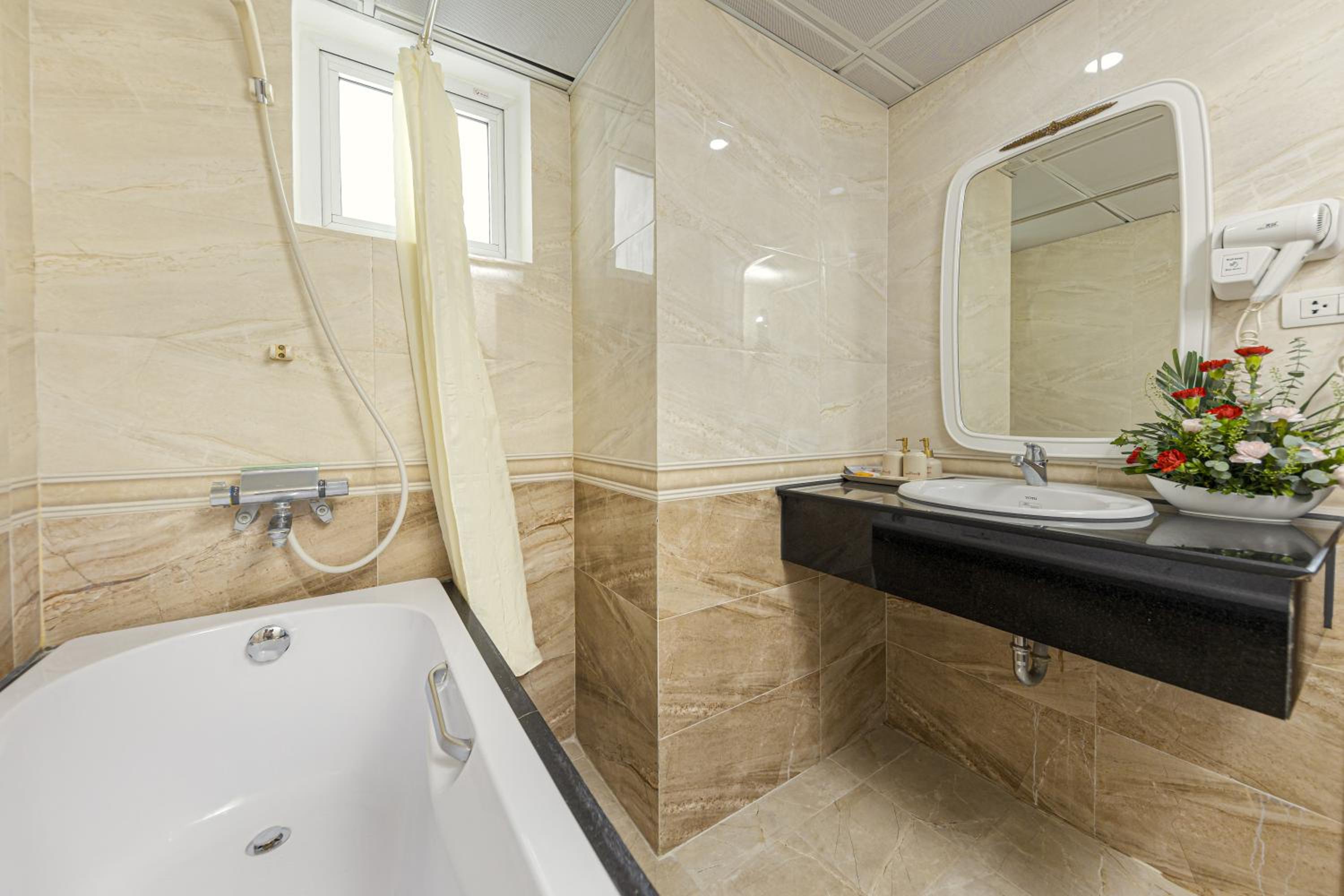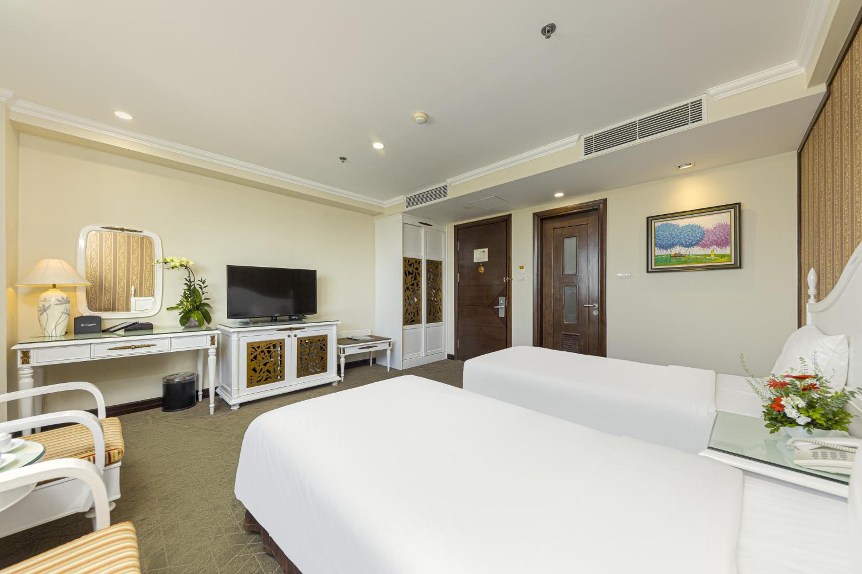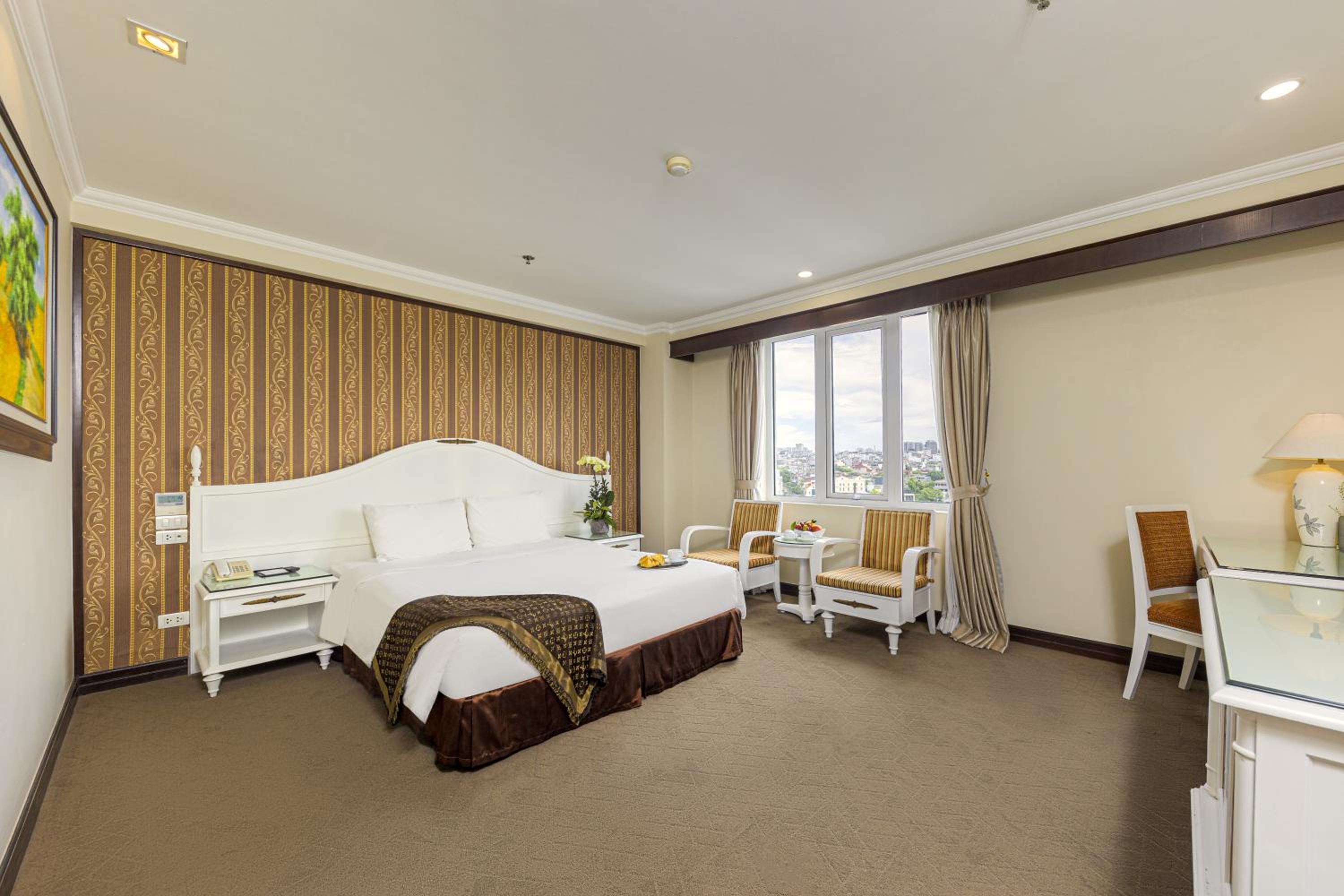 Relax in rooms offering views of the Old Quarter or the Red River, equipped with a flat-screen TV, minibar, and personal safe. En suite bathrooms feature a bathtub and complimentary toiletries.