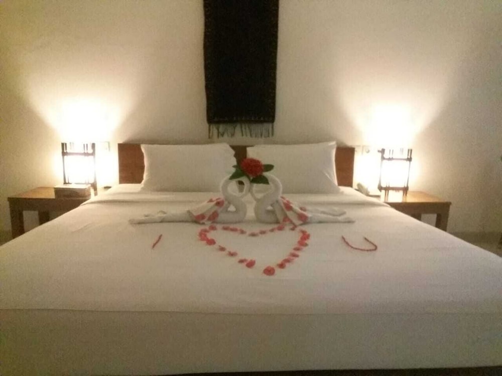 Right on a quiet stretch of powdery white beach. Sunset facing (and they were spectacular). Beautiful gardens. Friendly staff. Airport transfer included. Just a couple of km to central Labuan Bajo (5-8 mins). Motorbike rental available onsite or a taxi is 100 IDR. The rooms are basic but comfortable, clean and a good size. Pool was nice and warm. I'm genuinely glad I choose to stay at Luwansa and didn't stay in town.