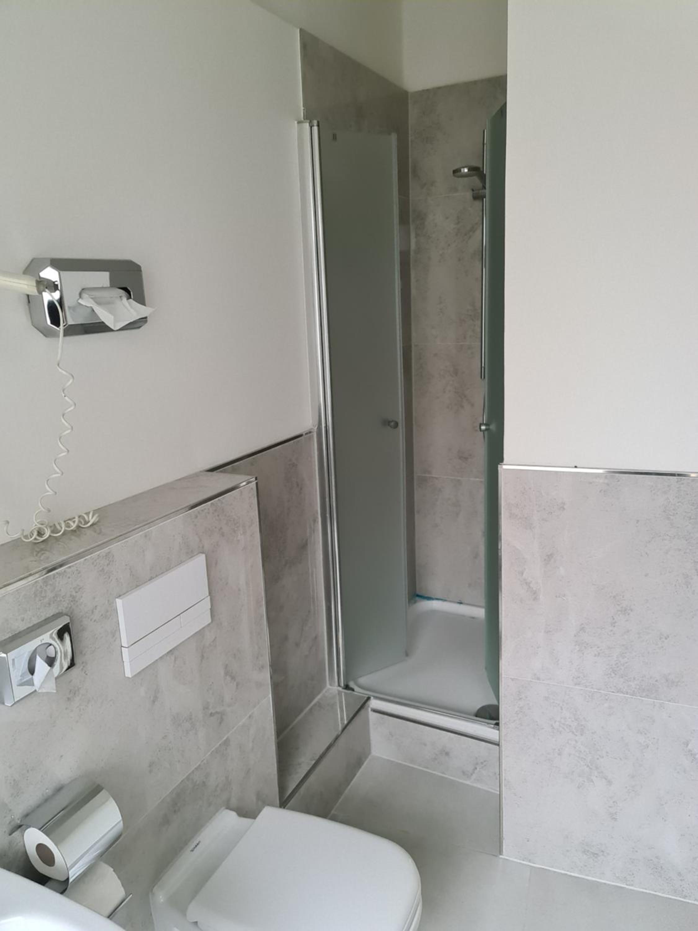 - Blut an der Wand des Badezimmers, schnelle Reparaturen der Wand die nicht gemalen waren, dazu war es ungeputzt und Schimmel in der Dusche.