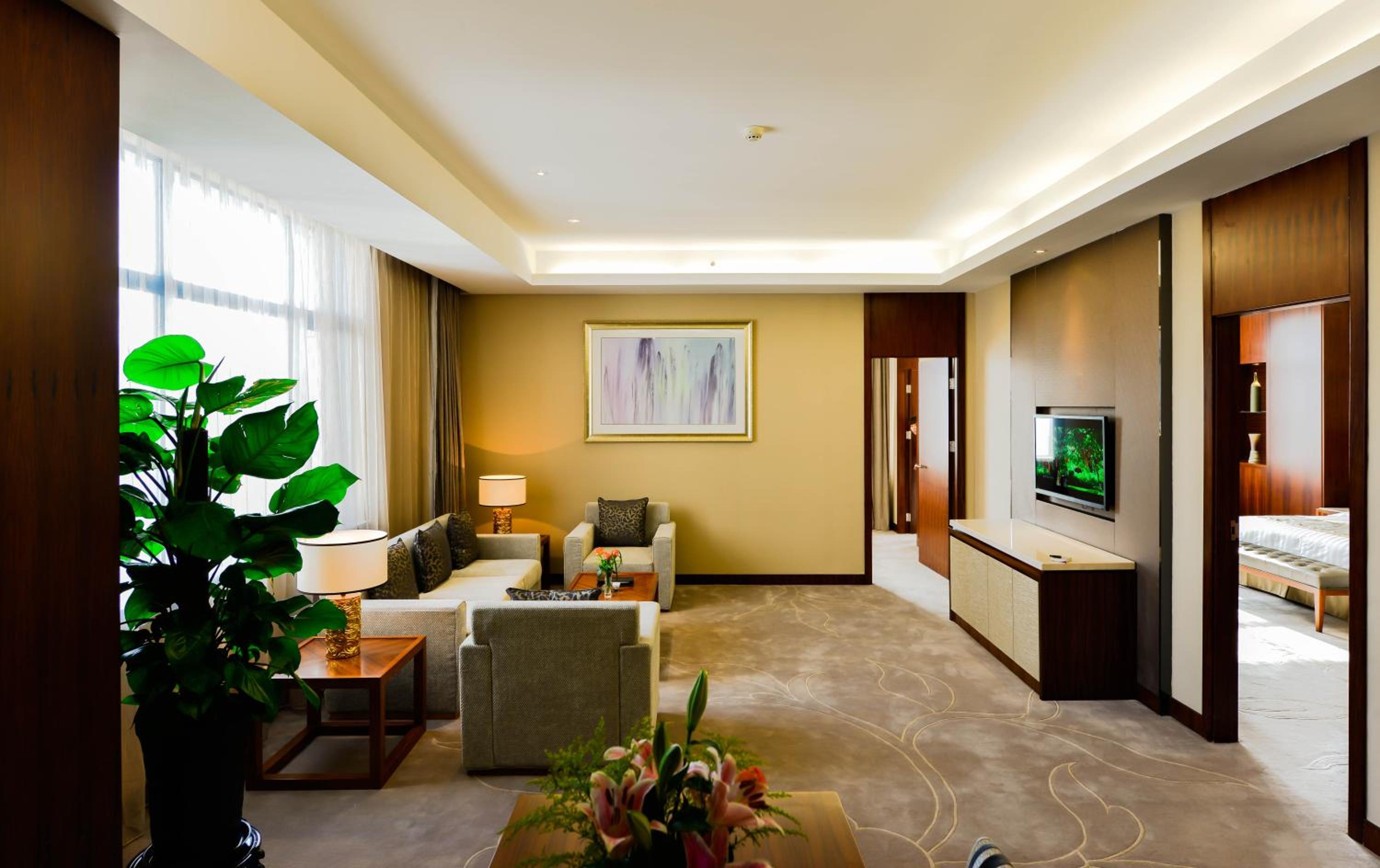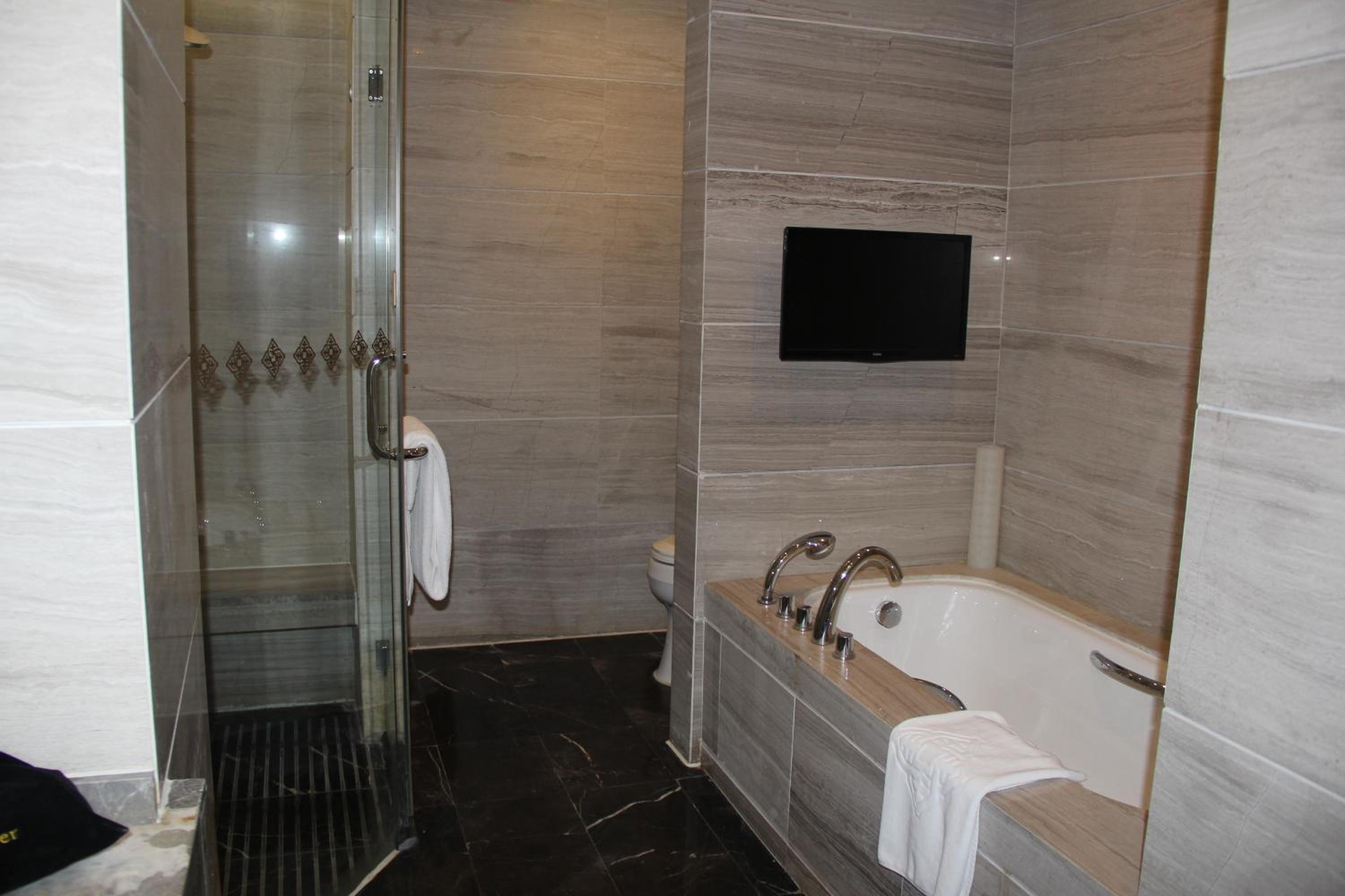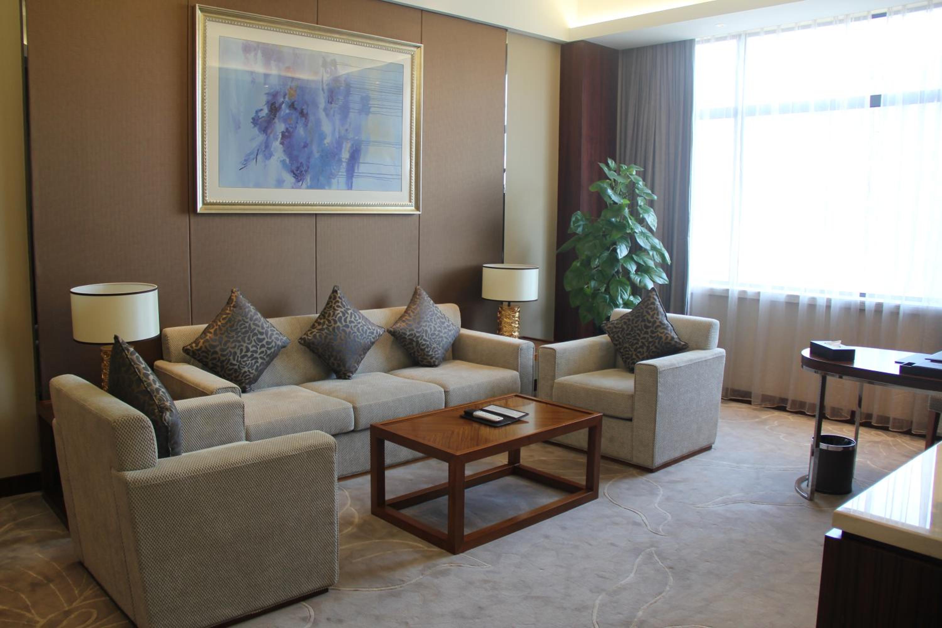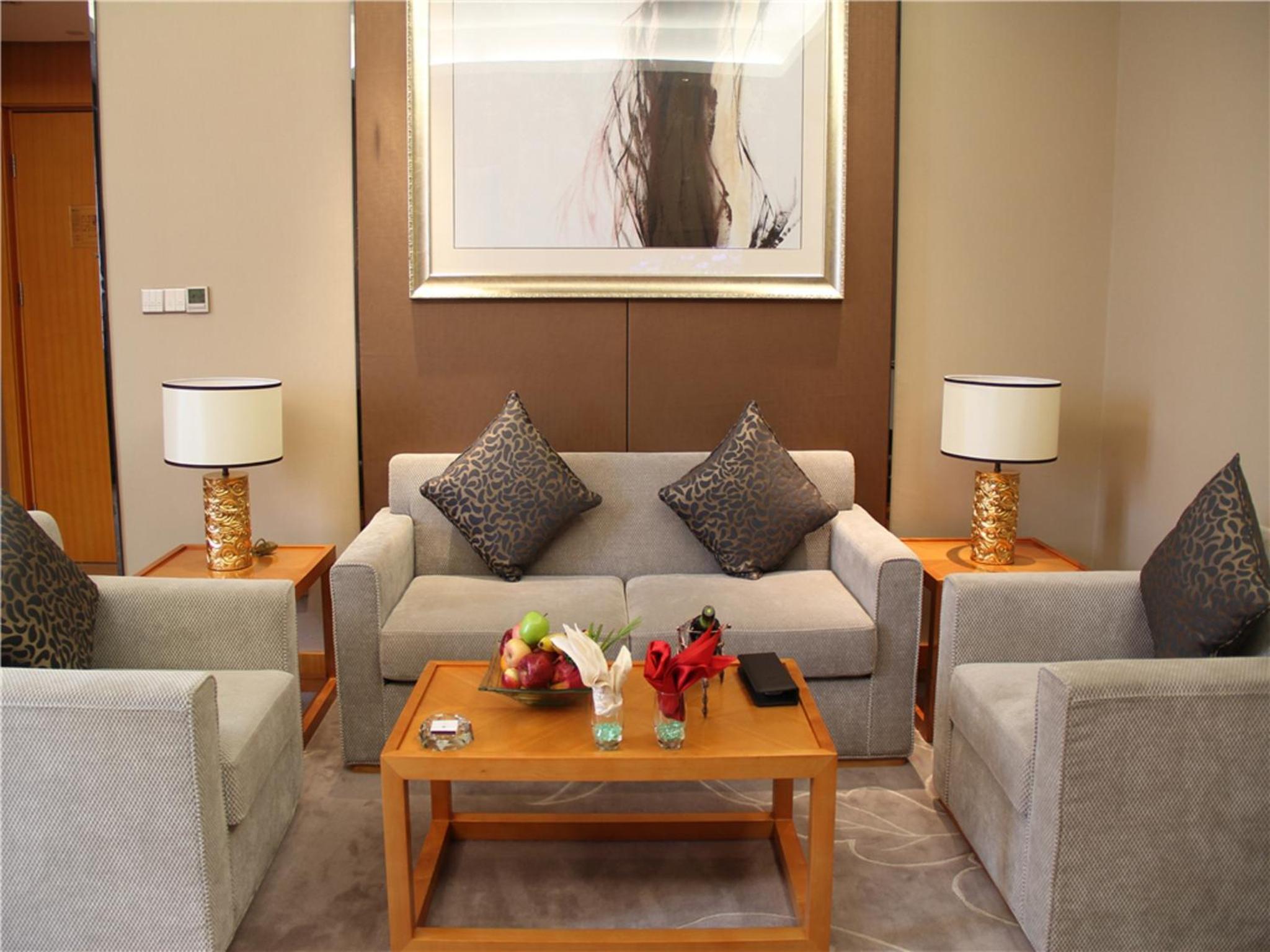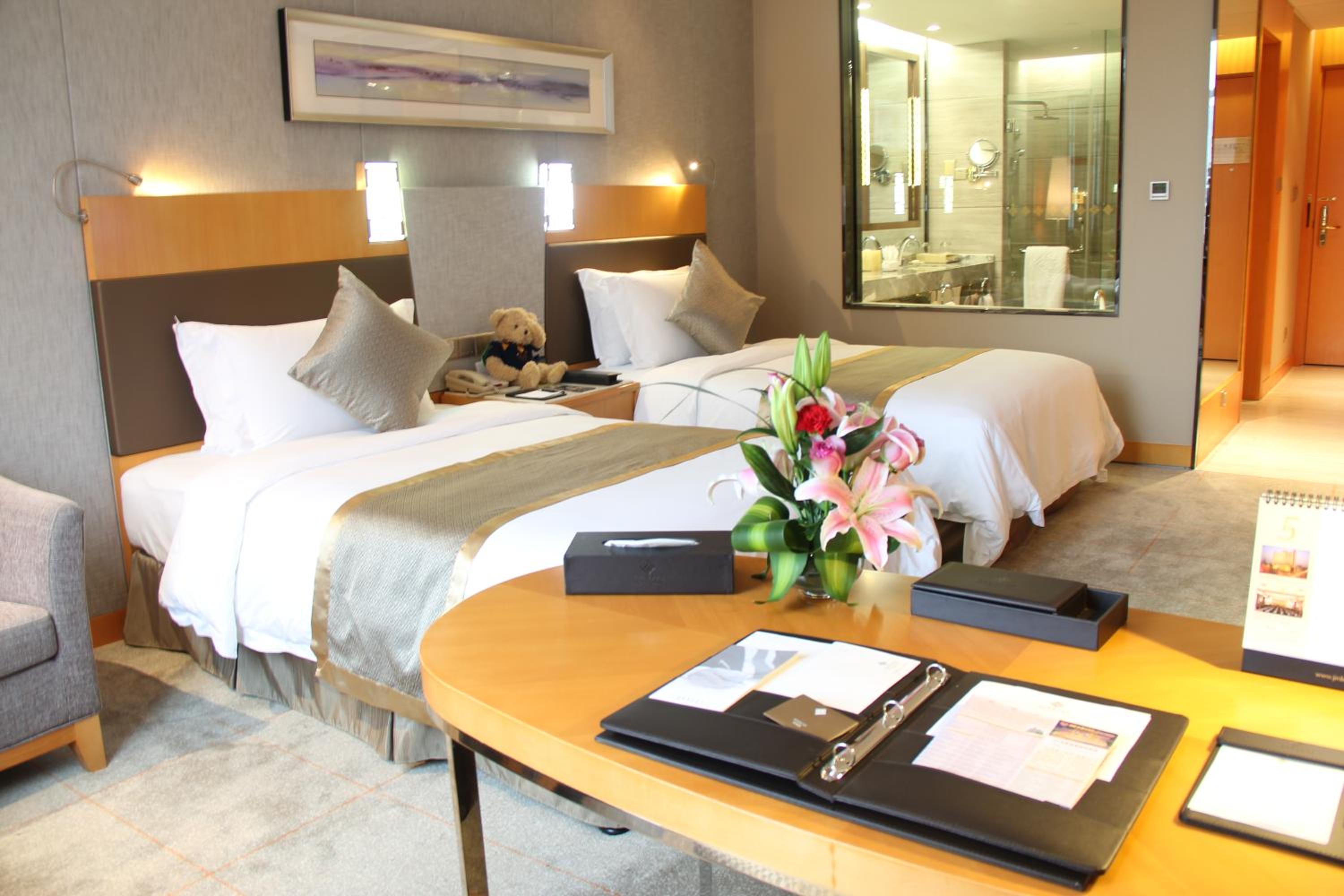 Jinling Grand Hotel, renovated in 2013, offers upscale accommodation with complimentary Wi-Fi. The elegant units feature birch furniture, carpeted flooring, and a range of amenities including tea/coffee bags, a minibar, and a flat-screen cable TV.