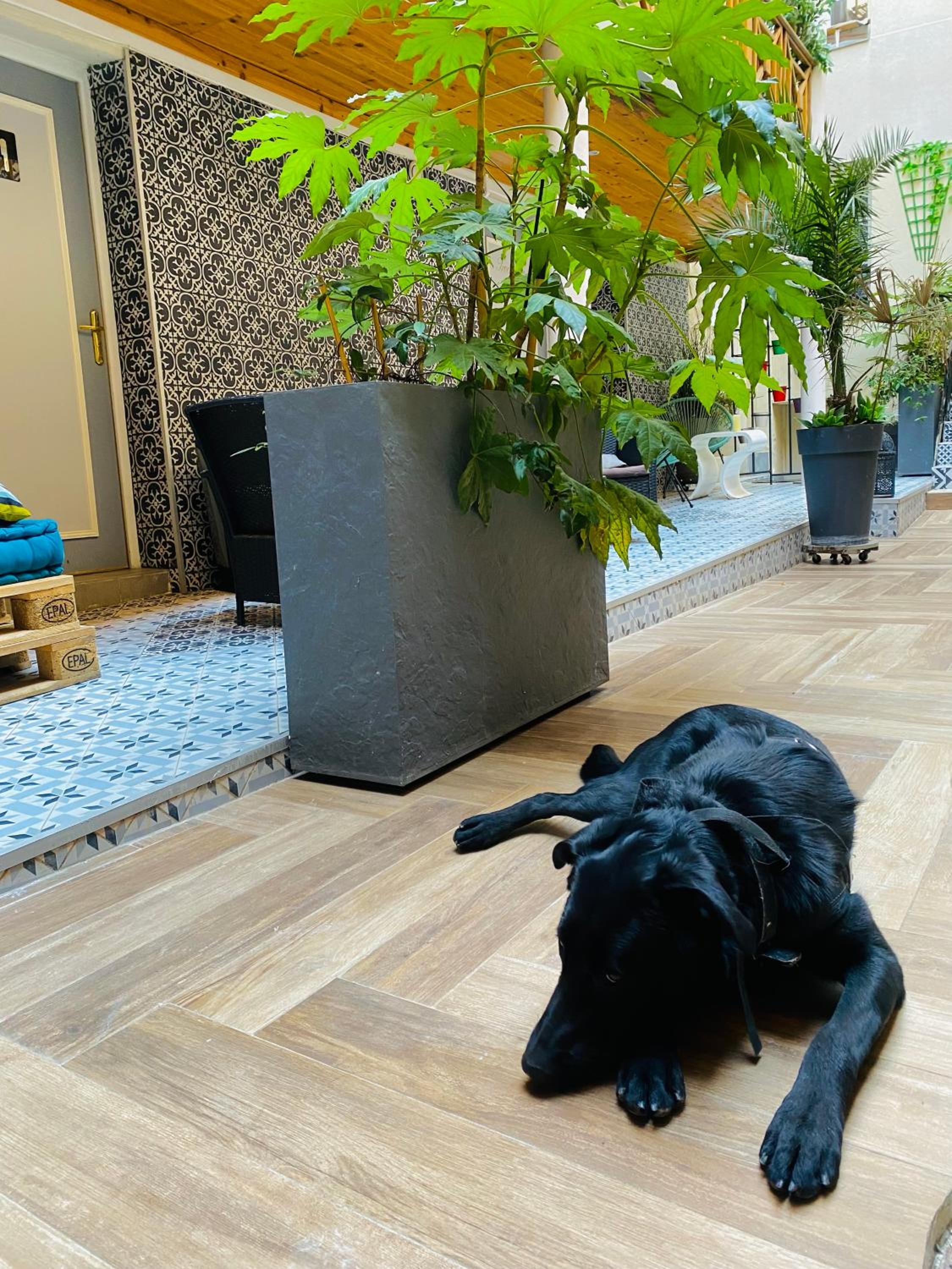 Les chambres donnent sur un très joli patio mais impossible de laisser la fenêtre ouverte