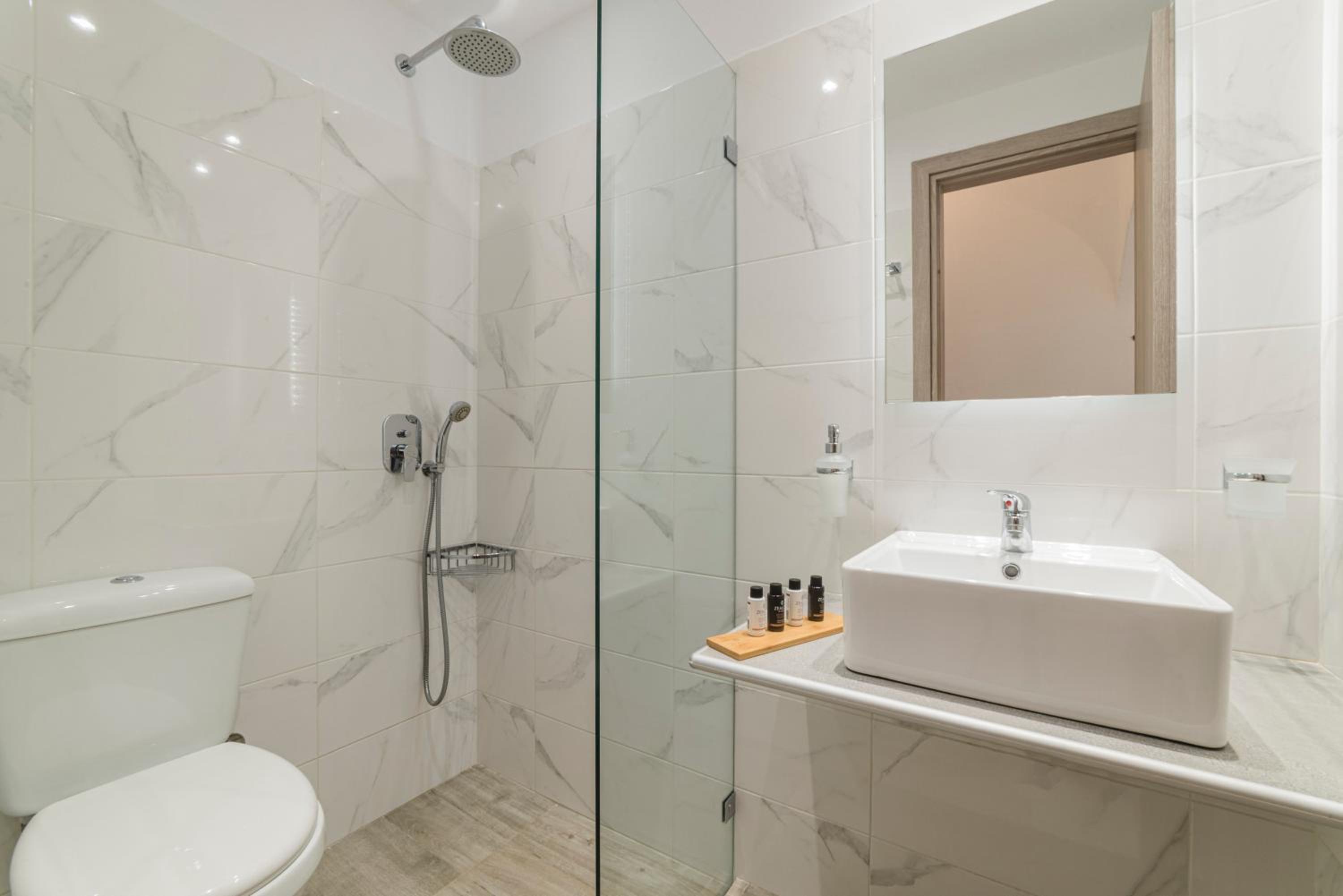 Η τιμή σε σχέση με την ποιότητα του δωματίου δεν συνάδει. Ειδικά το μπάνιο ήταν πολύ μικρό και όχι τοσο ευρύχωρο. Δεν είχε τζάμι από την μπροστινή πλευρά του με αποτέλεσμα να βρέχεται η τουαλέτα κάτι που ήταν αρκετά άβολο και το μπάνιο γέμιζε με πολλά νερά.