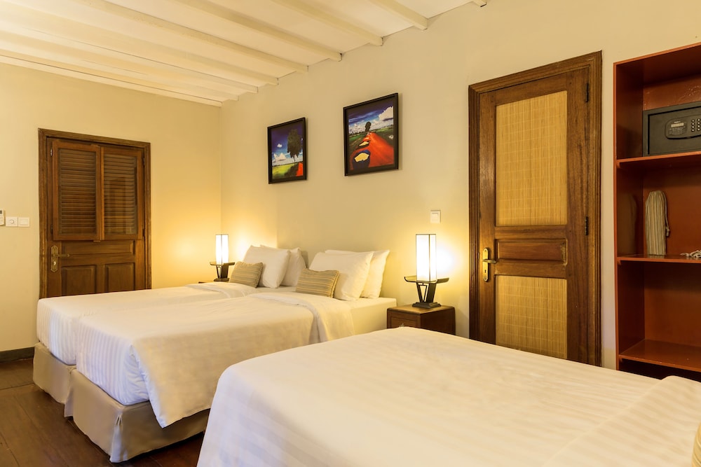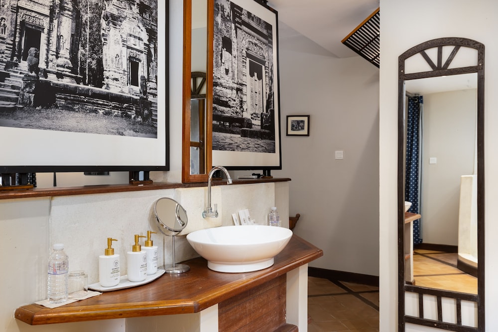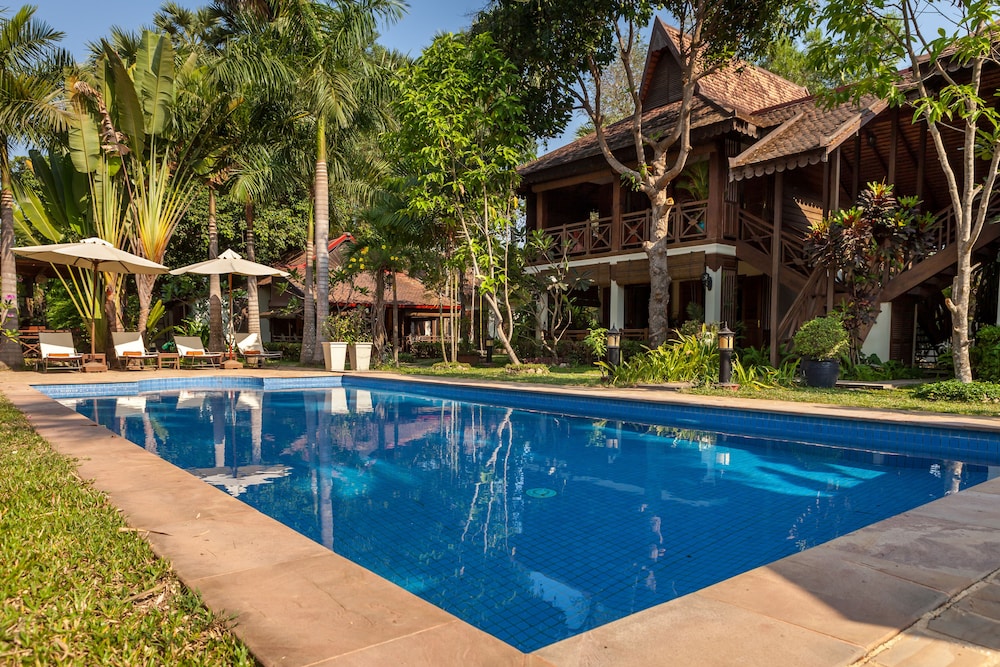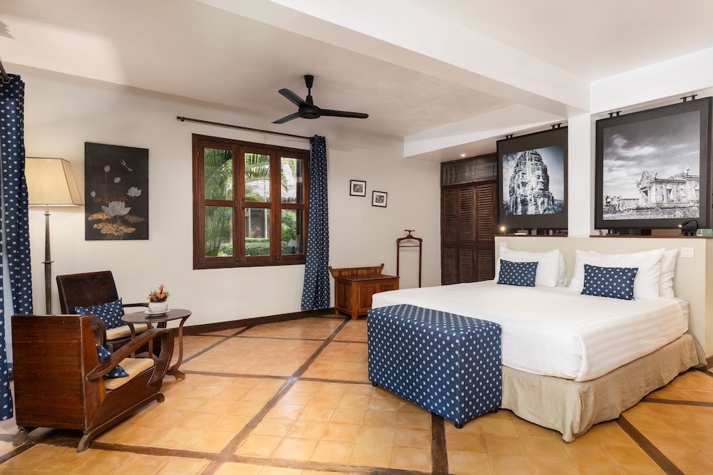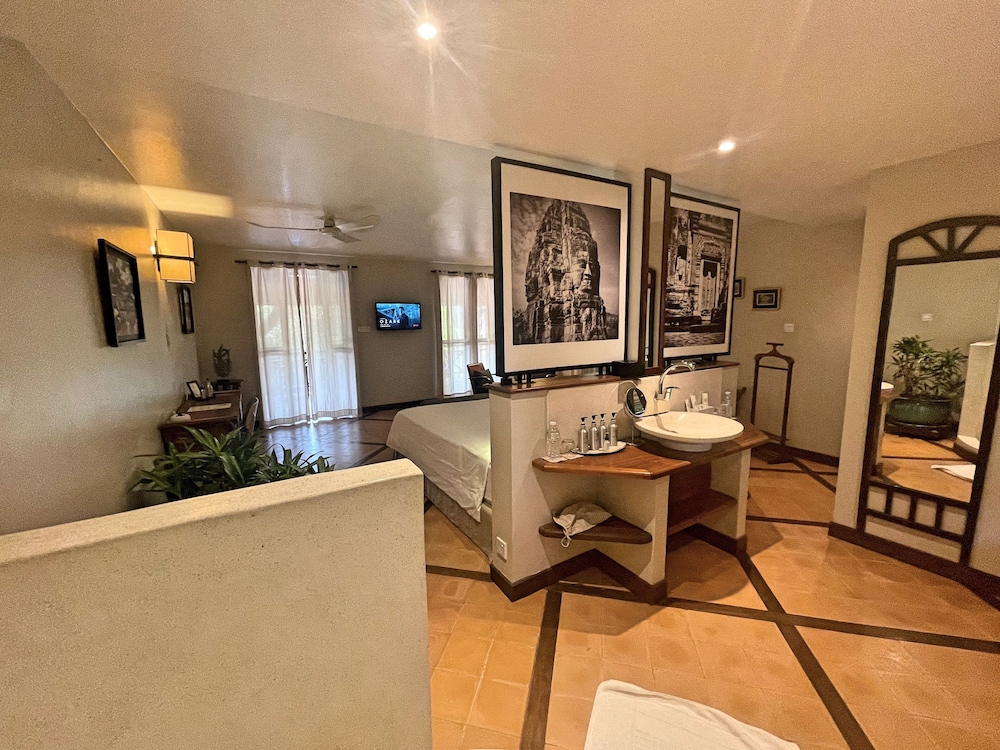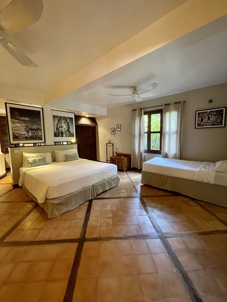 프랑스 사람이 하는 호텔인데 시설 청결도 가격대비 좋았습니다. 다만 시내와 좀 떨어져 있어서 조용한 곳을 원하는 분들에게 추천합니다. 전 혼자 였는데 호텔 전체를 전세낸 것처럼 썼습니다. 방은 무지 넓고 수영장도 좋습니다. 시내 나가는 비용은 툭툭 이용 4시간에 7$. 공항픽업은 왕복 무료구요. 휴식하며 앙코르와트 관광하실분들에게 추천.
