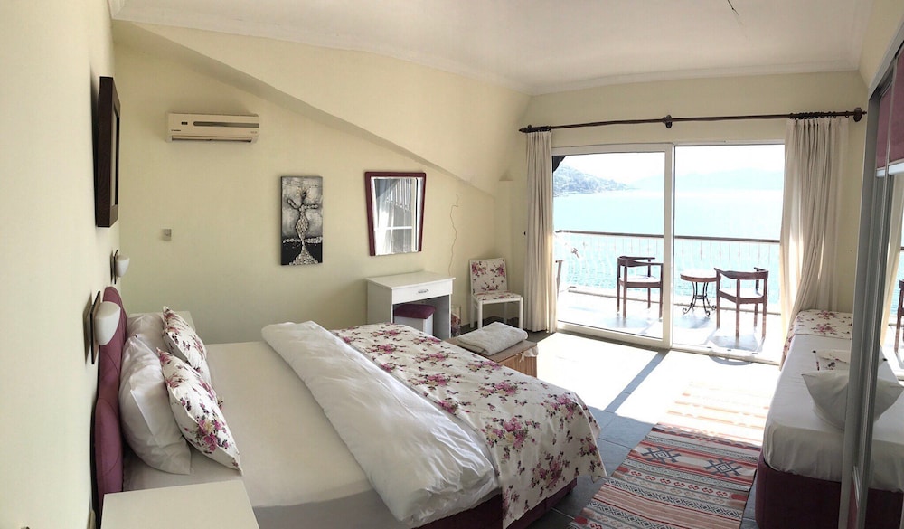 Otelde merdiven,köpek ve klima motoru sesinden uyumak mümkün degildi, surekli araba gecmesi deniz ve otel arasinda guneslenirken oldukca rahatsiz edici,yandaki guletlerin pisligini denize akitmasi,denizde cop poseti karpuz kabugu pet sise ve tekne pislikleri sebebiyle,deniz icin Selimiye yi tercih ettik,otel oldukca bakim istiyor, kışın elden gecirilmesi gerekiyor.