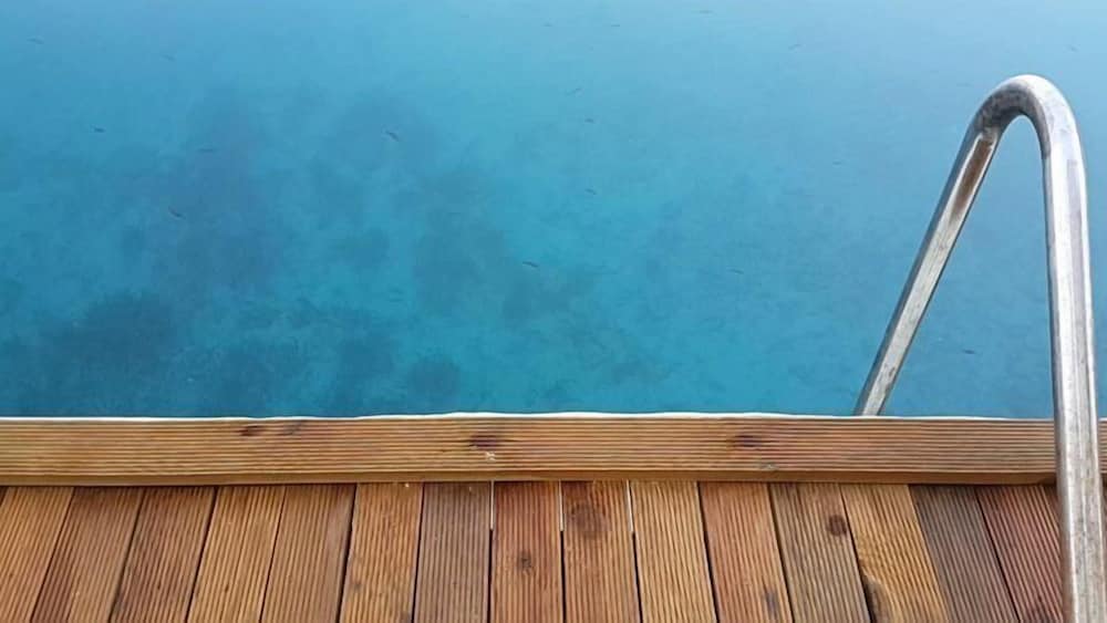 Ett mycket charmigt om något bedagat hotell direkt vid stranden. Vi bodde högst upp med en fantastisk utsikt över vattnet från balkongen. Trapporna var jobbiga att gå i och folk som har svårighet att gå i trappor bör kanske inte välja detta hotell. Vårt rum var funktionellt med en bra säng. Vi uppskattade bryggan med solsängar och de fina stegen/trappan för att komma ned till vattnet. Vi åt alla måltider på hotellet och vi var nöjda med frukost och övriga måltider. Wifi fungerade inte i början men kom igång under vistelsen med en bra uppkoppling. All personal var hjälpsamma och serviceinriktade.