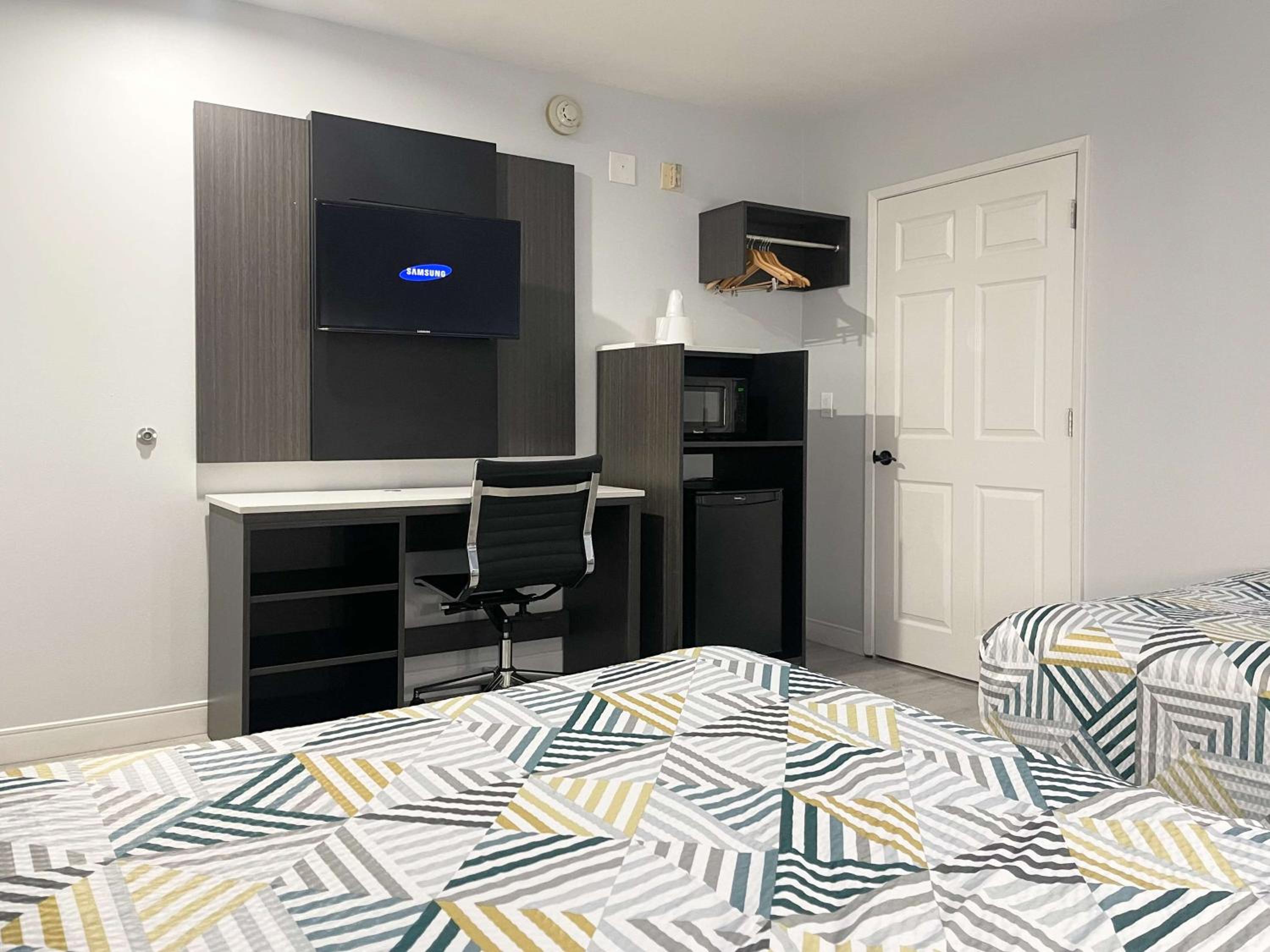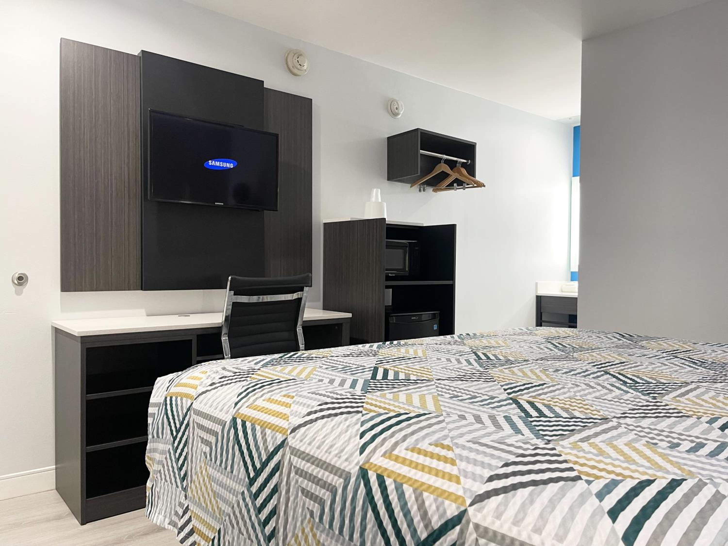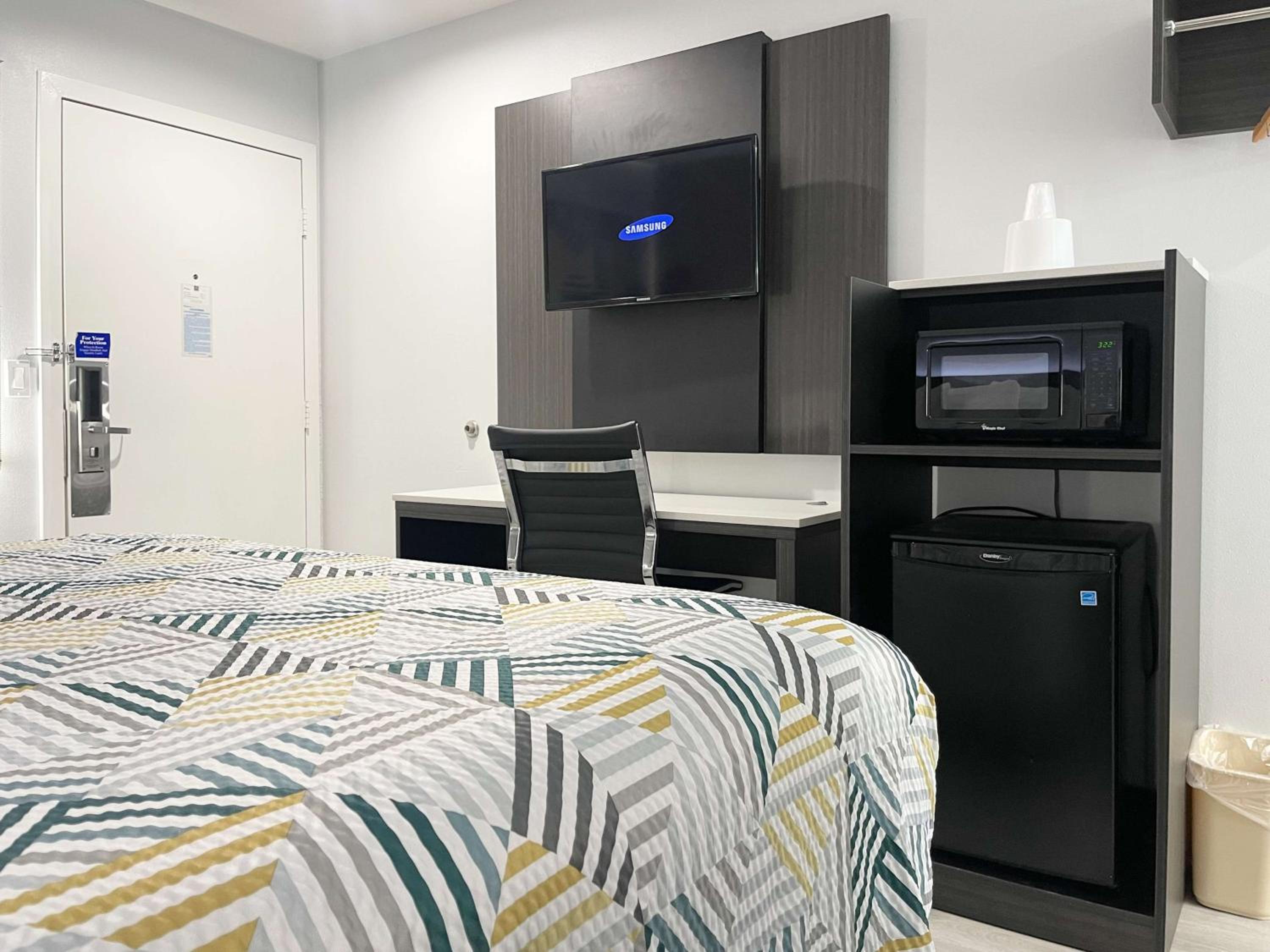 The room was super clean bed very comfortable wish it had a small fridge.
