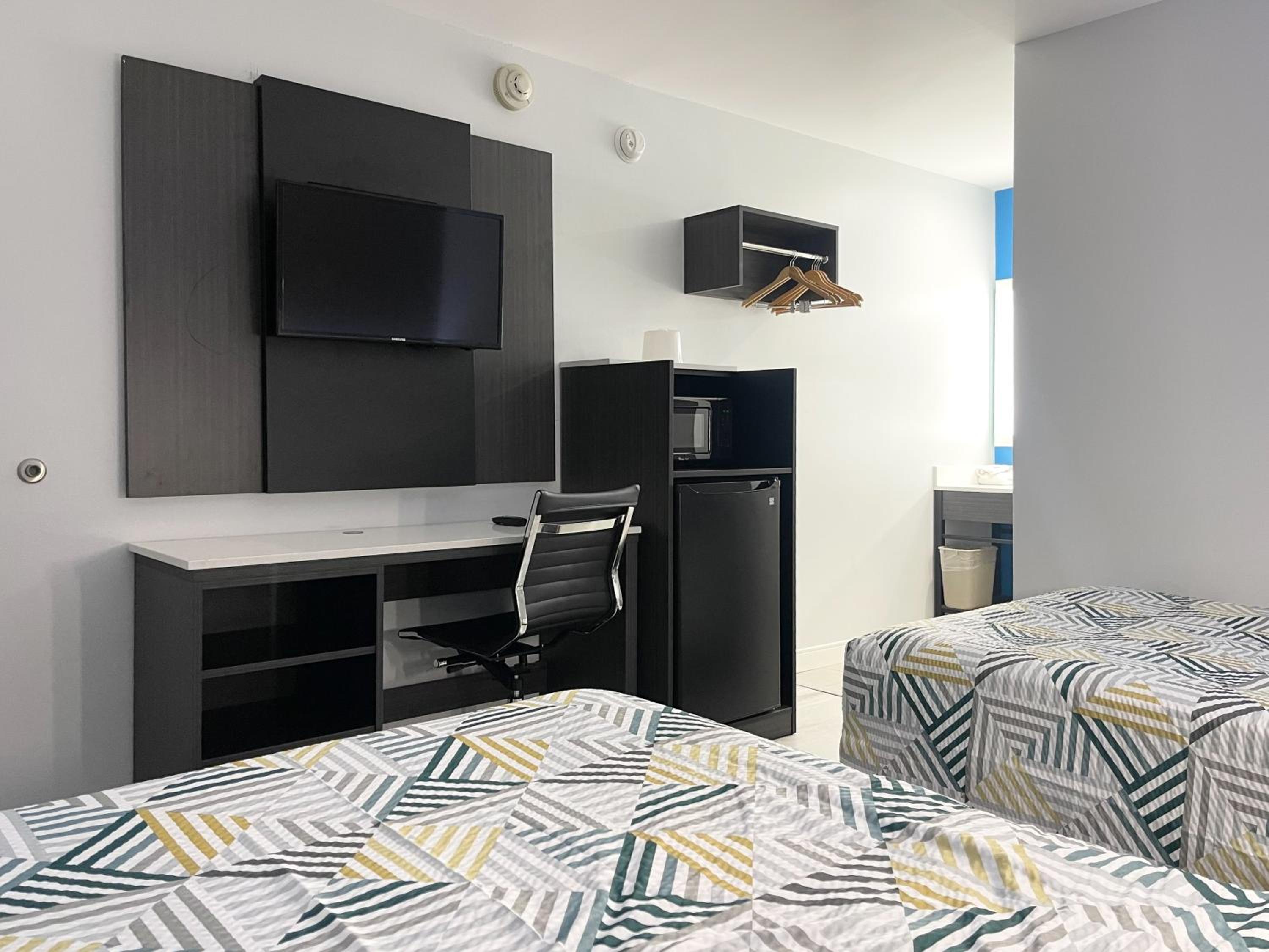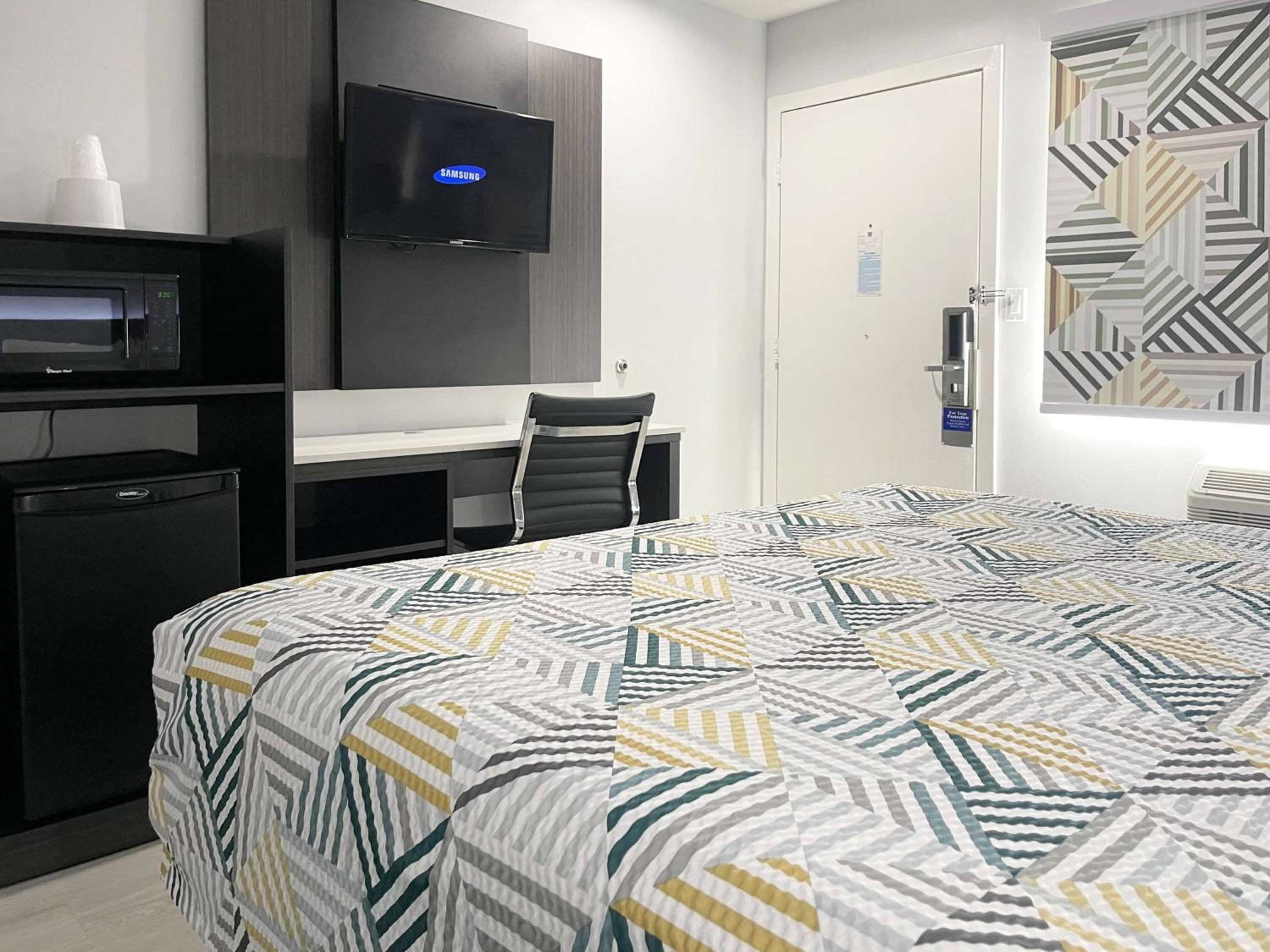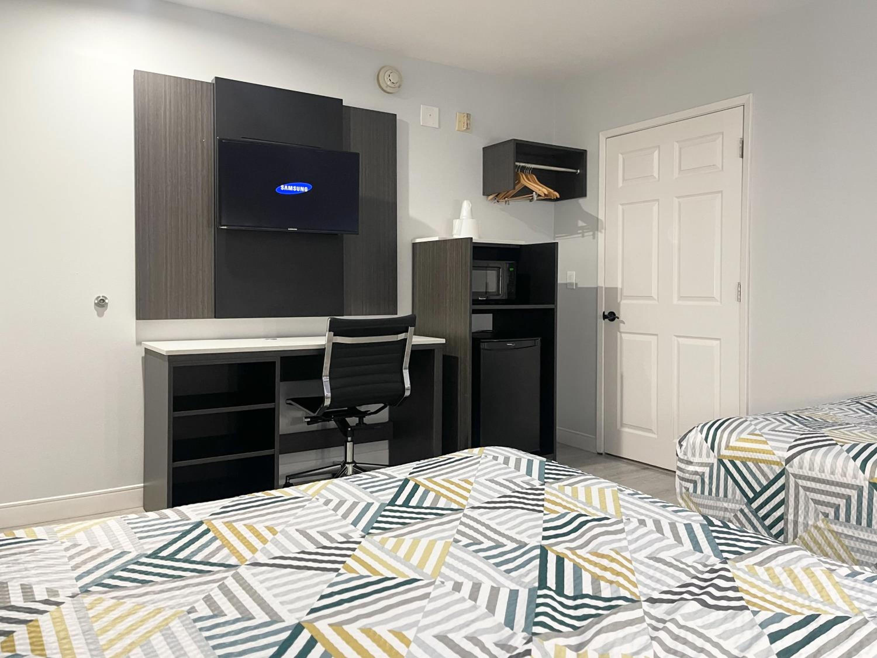 The room was super clean bed very comfortable wish it had a small fridge.