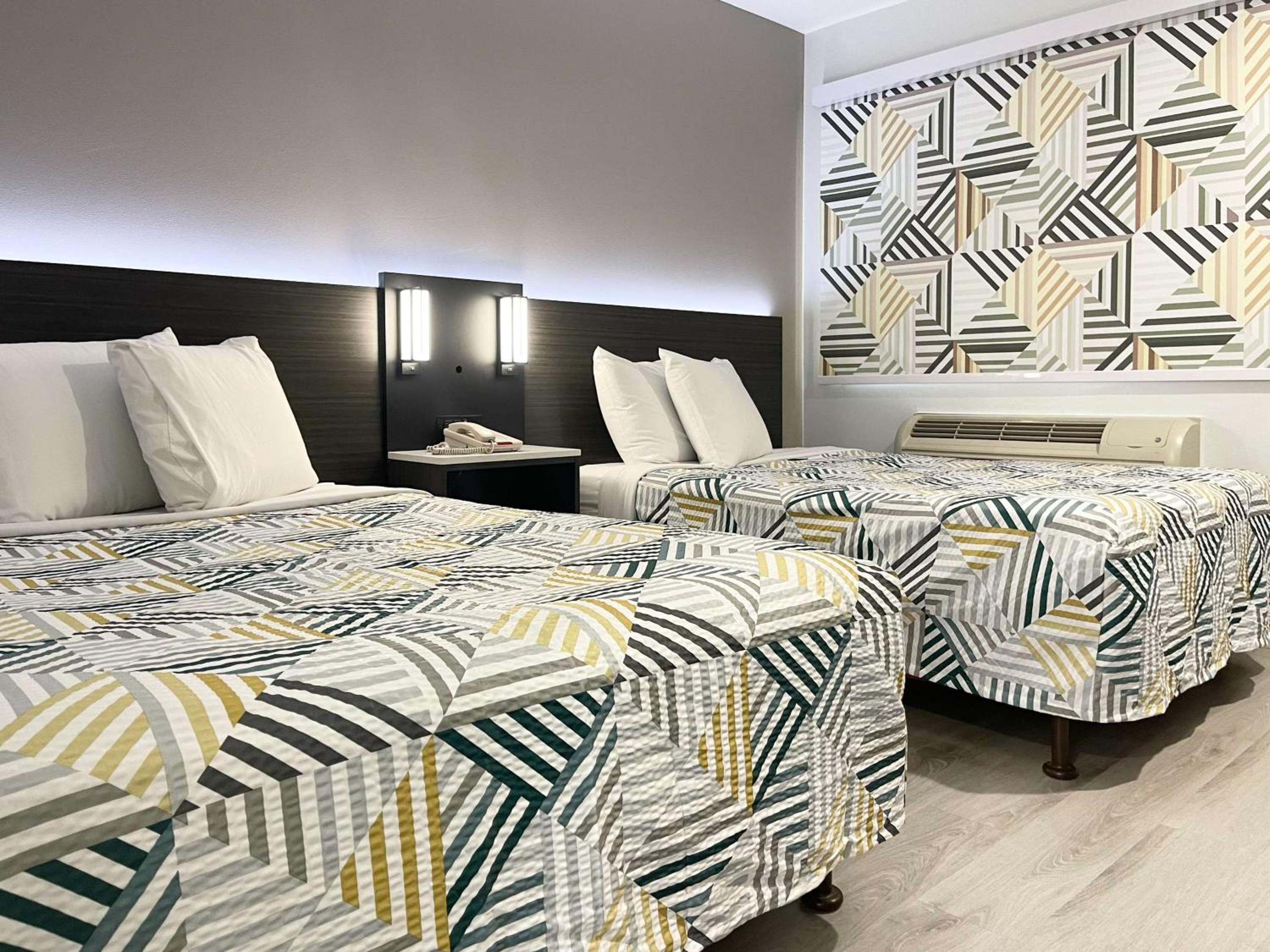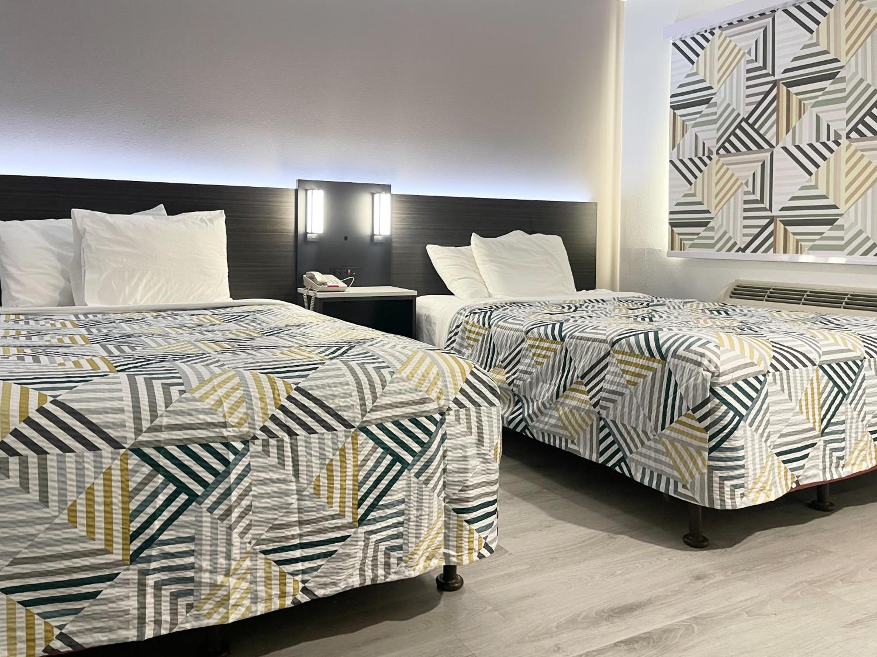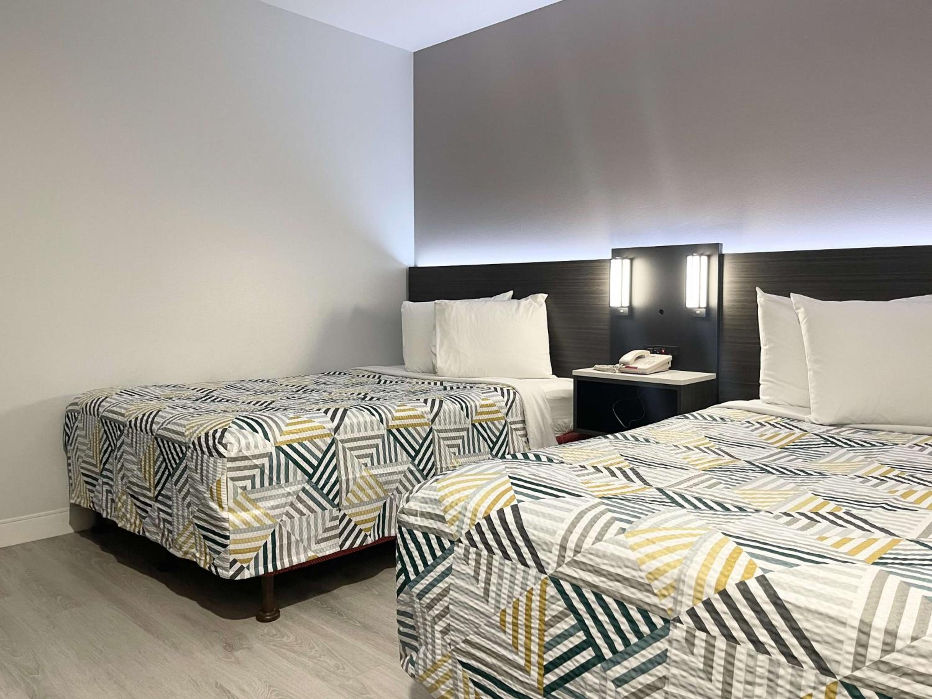 They were located fairly close to the beach. There was a park right next to the motel to take the dog out for a walk and potty. We were on a corner room, so it was fairly quiet, not having anyone next to us on one side.