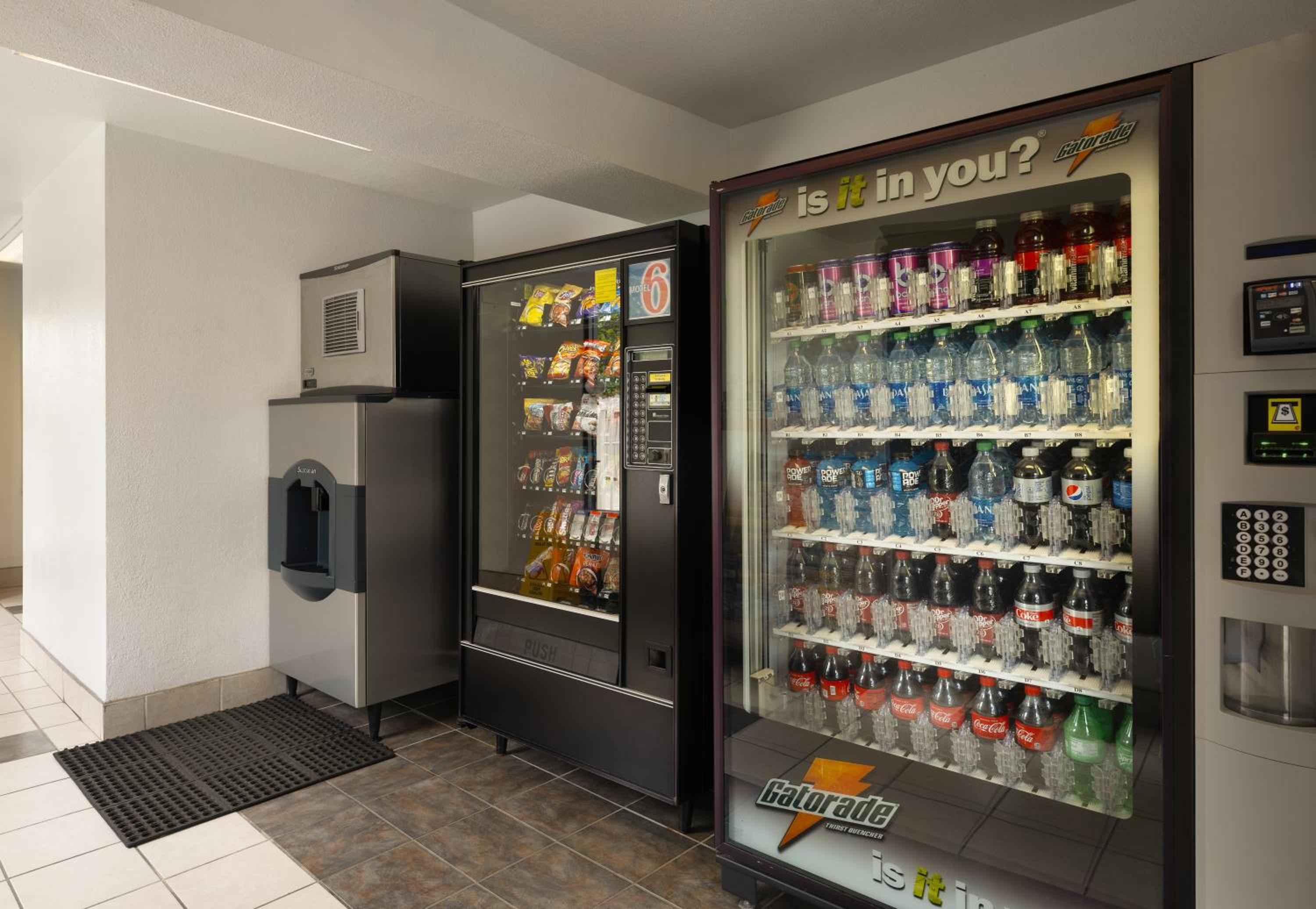 At night, there wasn't any lights on outside the walkways, so it was dark walking to get ice or when you arrived back at the motel in the evening. The room where you got ice was extremely hot, probably due to the washer and dryer, however there were vending machine in there as well. Might not be a good place to have goodies that could melt with the room being so hot.