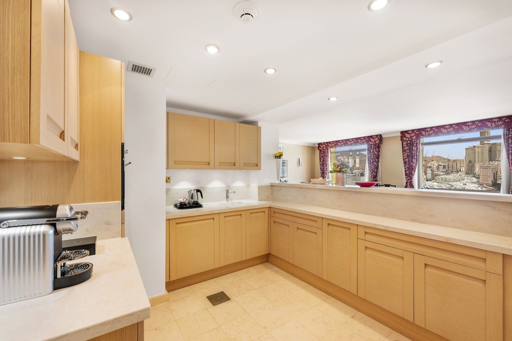 This 5 star hotel was great, I asked for interconnecting rooms for the two rooms I booked and was given this and also was given a free upgrade of rooms with views of the Haram which was a good gesture from the hotel. Rooms were great with all the facilities needed for our stay and room size was adequate for us. Breakfast was great with a nice selection of food, drinks, savoury snacks and also a chef on hand to cook omelette spiced as required or fried eggs and a chef to cooks waffles. Service was also great here with staff ready to take empty plates away and bring you items as you require them. We were always greeted and looked after by the staff at the hotel. Always helpful and ready to assist when needed. Hotel location was close enough to Masjid Al Haram with no issue with steep hills for example or need for any shuttle service due to it being next to Masjid Al Haram. All in all great Hotel, great staff and service, great location and price reflects this 5 star hotel. Keep up the good work and in’sha’allah I will keep you in mind for any future stays.